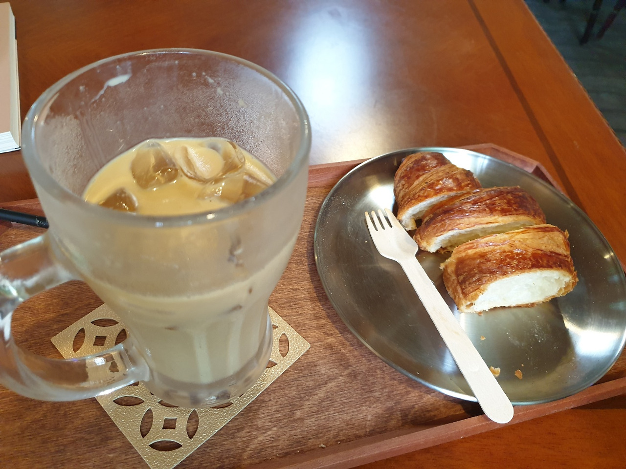 오전-아이스카페라떼, 크로상