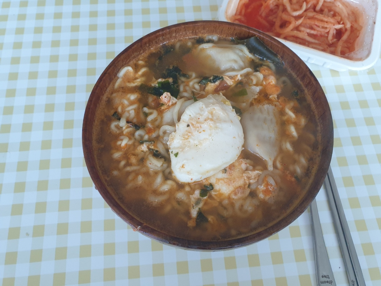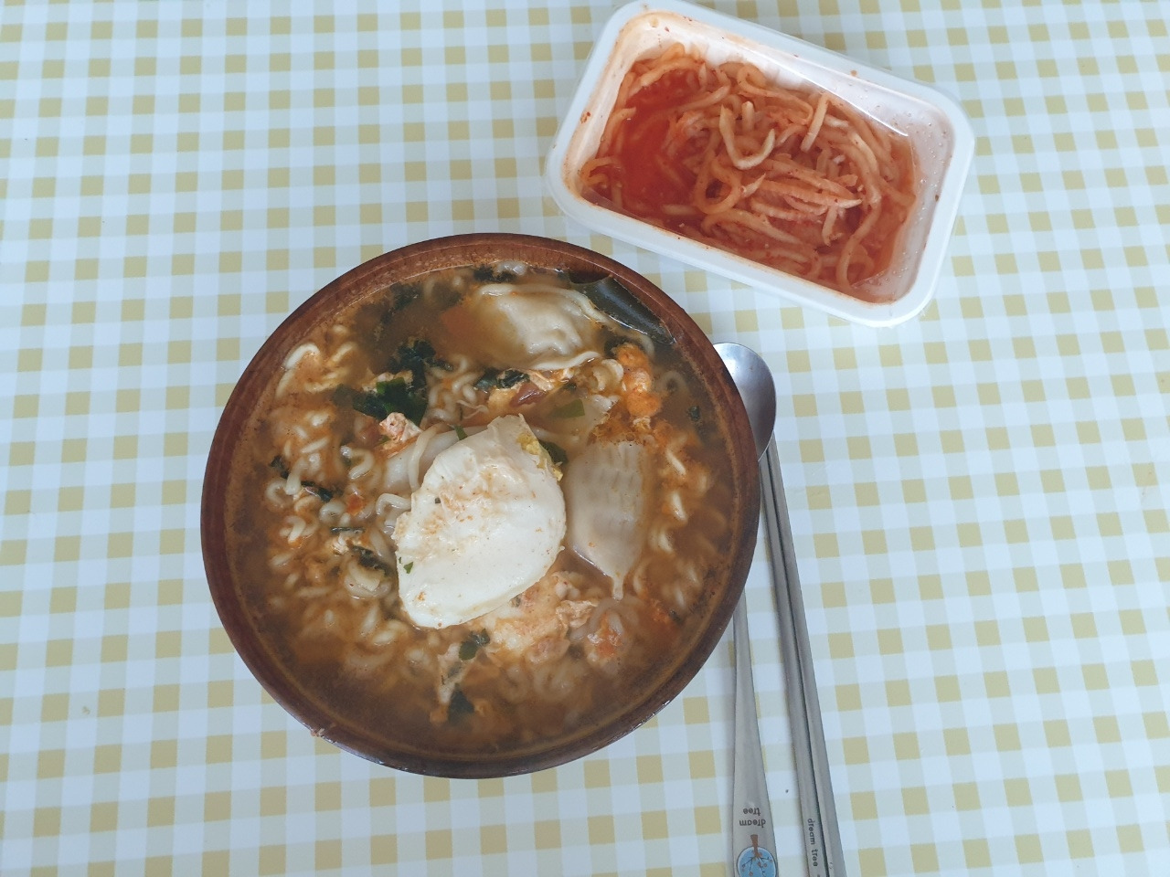 오전-만두 넣은 라면, 무생채