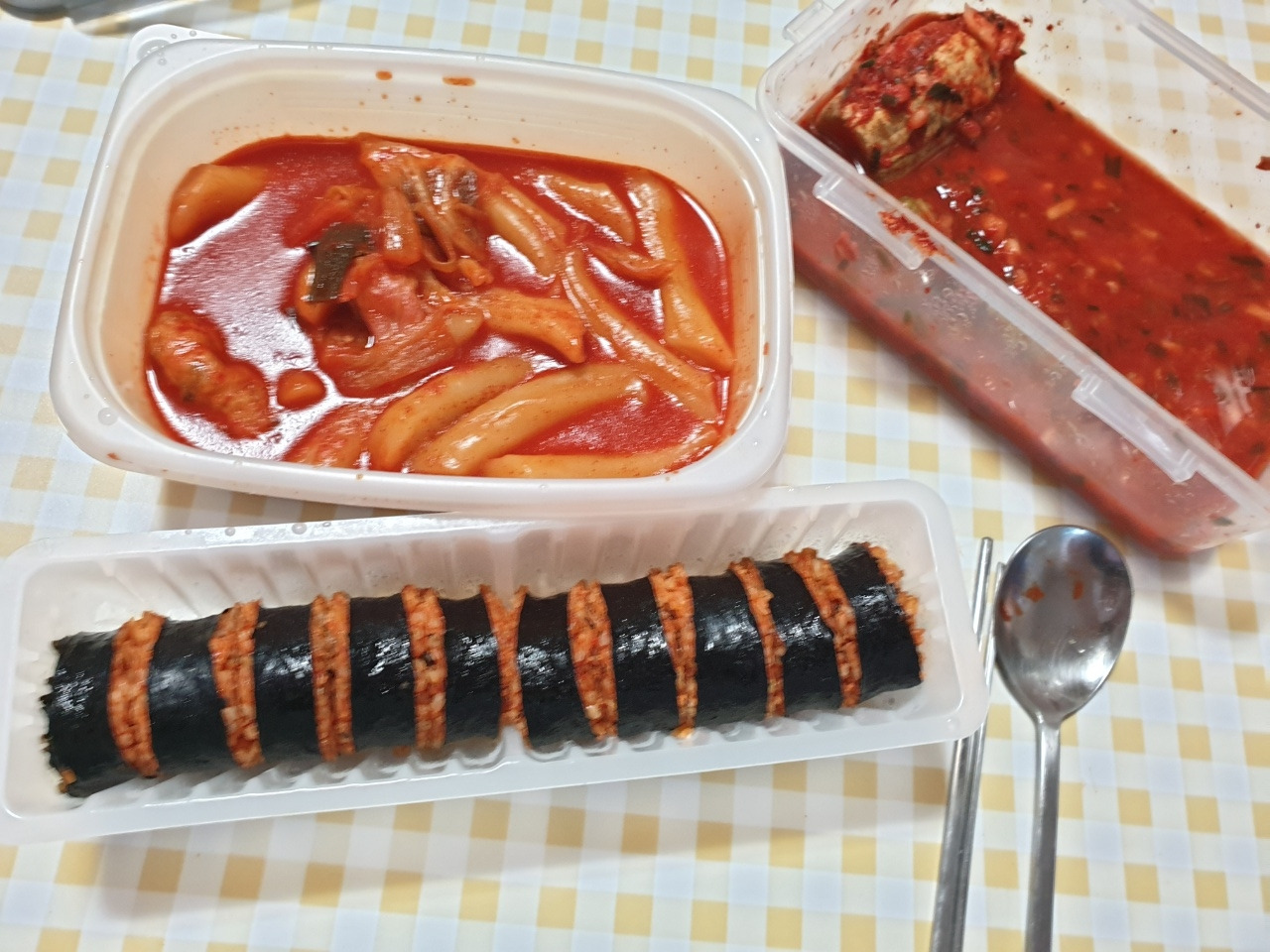 오전-참치김밥, 라볶이, 제육덮밥, 김치