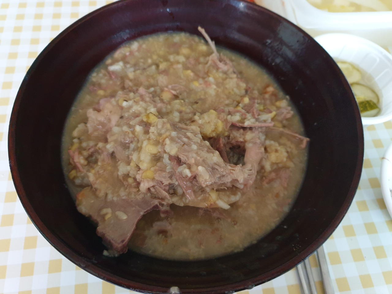 오전-지난번 한방오리백숙 데워서 한 그릇