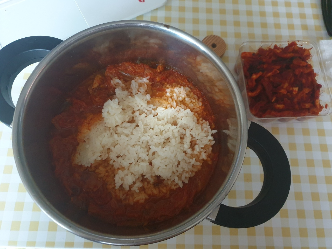 오전-김치찌개에 밥 풍덩, 고들빼기 김치