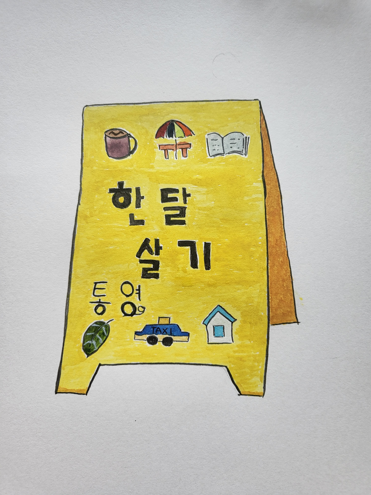 한 달 살기를 마친 후 두물머리 청년 공간에서 ‘통영 한달살이 여행기’를 나눌 수 있는 시간을 가졌다. 개인적으로 컴퓨터나 TV를 연결해서 발표하듯이 하는 것보다 손글씨, 다꾸(다이어리 꾸미기)의 형식을 좋아해서 큰 스케치북에 내용을 정리했다. 옹기종기 사람들이 모여들고 반짝이는 눈빛들이 내 이야기의 집중도를 표현하고 있었다. 그중에서도 뜨거웠던 반응은 통영과 거제도 여행에서 뽑은 최고의 음식 3개 맞추기! 굴과 회를 잘 먹지 못하는 내 식성을 이미 설명했기에 여행기를 들으러 온 분들은 머리 위에 물음표 세 개 이상! 영상을 편집해서 물음표가 생겨난 게 아니라 진심으로 사람들의 머리 위에 물음표가 떠오른 듯하다. 3위는 장, 2위는 양파 1위는 바로!!! 밤고구마였다. 욕지도 밤고구마!!! 사람들 머리 위에 떠오른 물음표는 허무함에 녹아내린 듯하다. 아니, 조금 더 기대해 봐도 된다는 의미에서 밤고구마 예찬이 시작됐다.