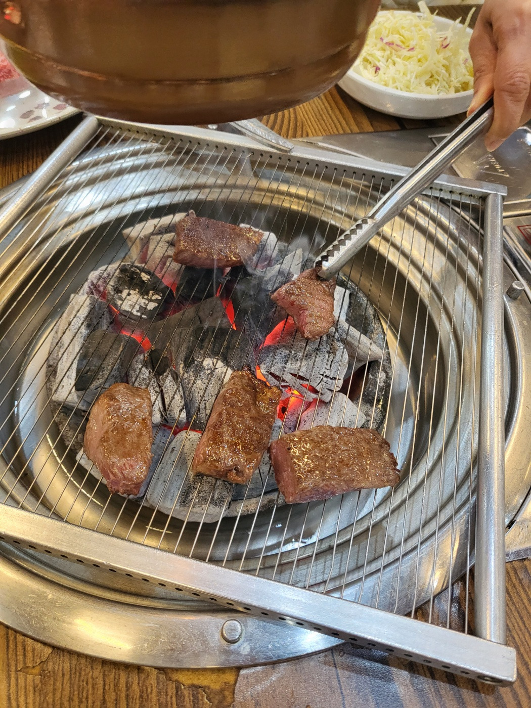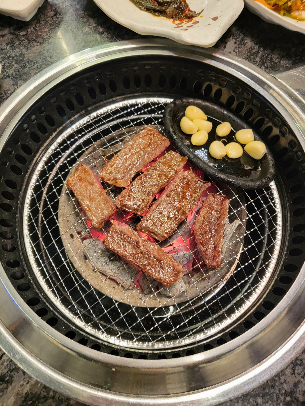 나의 배고픔과 배부름은 나중 일이고, 고모의 배고픔과 배부름에 집중하며 고기를 굽고 잘게 잘라서 옆 접시에 놓는다. 주변에 있는 반찬들을 고모 앞에 가까이 두고 내 손은 쉴 새 없이 한우와 함께 구워진 새우껍질을 벗긴다. 껍질을 벗긴 새우를 또 잘게 잘라서 옆 접시에 두고 반찬들도 잘게 자르고 밑반찬 떨어진 것들을 리필 요청, 고기는 구워지고 또 뒤집고. 맞은편 아버지 접시에도 고기 몇 점 올려드린다.