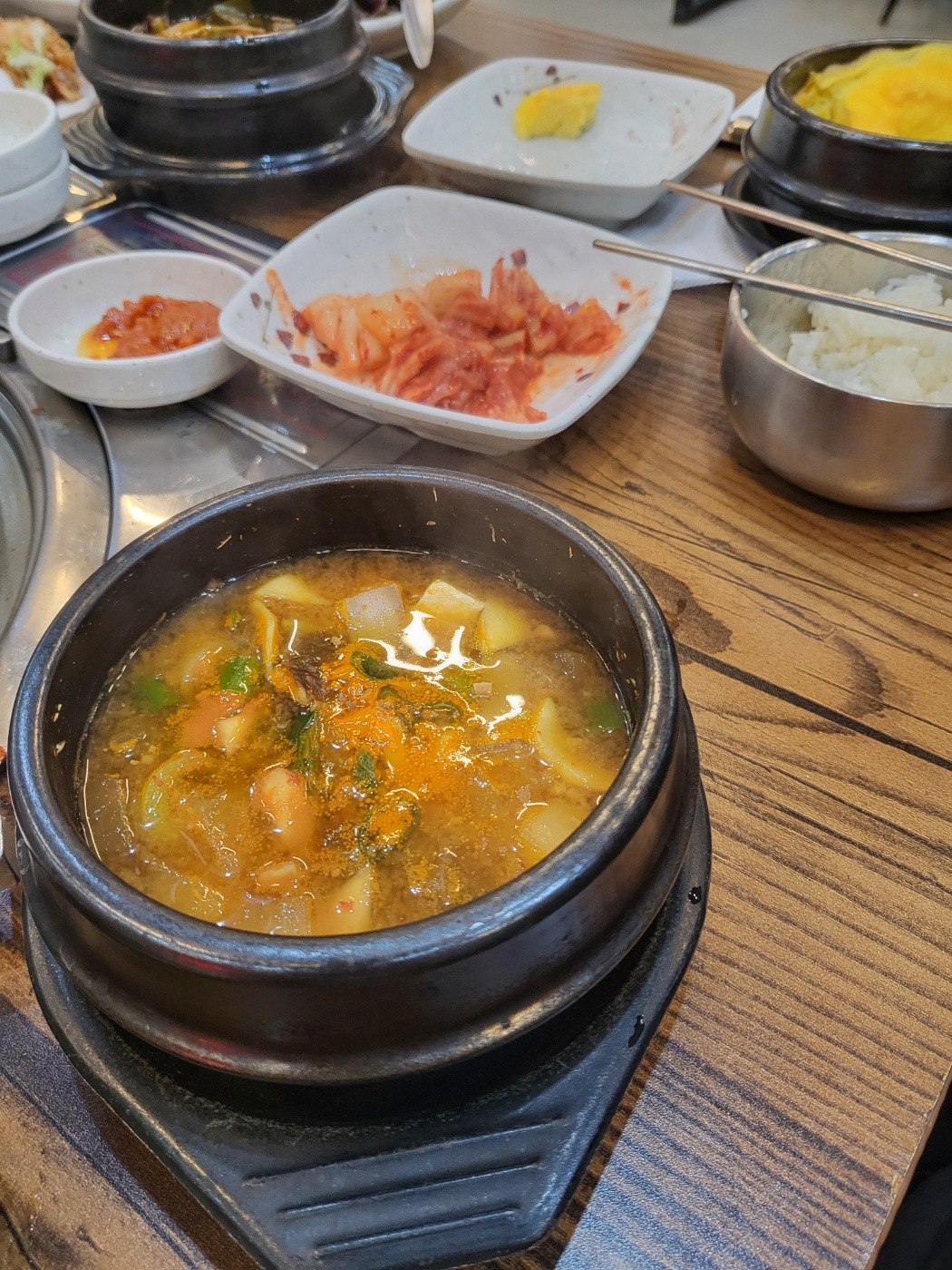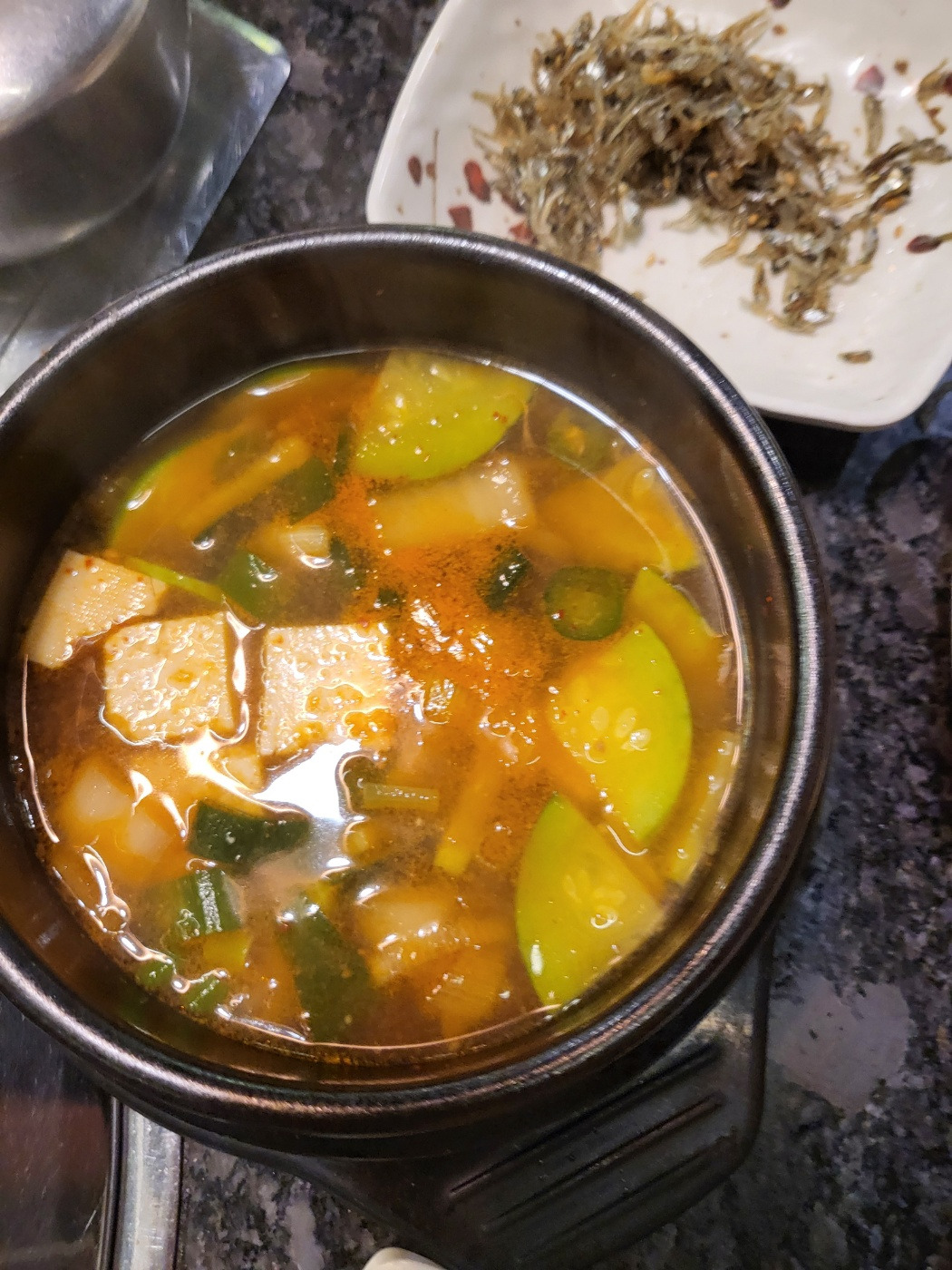 나는 고모가 먹기 편하게 된장찌개를 고모 쪽으로 두고 공깃밥을 반 덜어내어 고모 앞접시에 놔준다