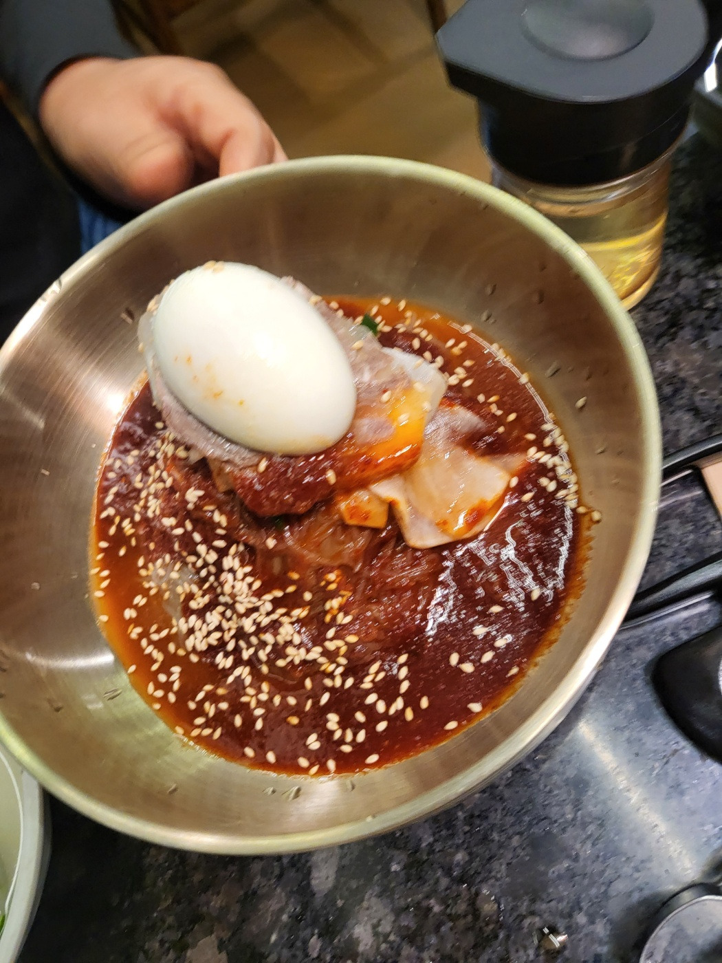 후식으로 아버지는 비빔냉면, 고모는 된장찌개와 밥