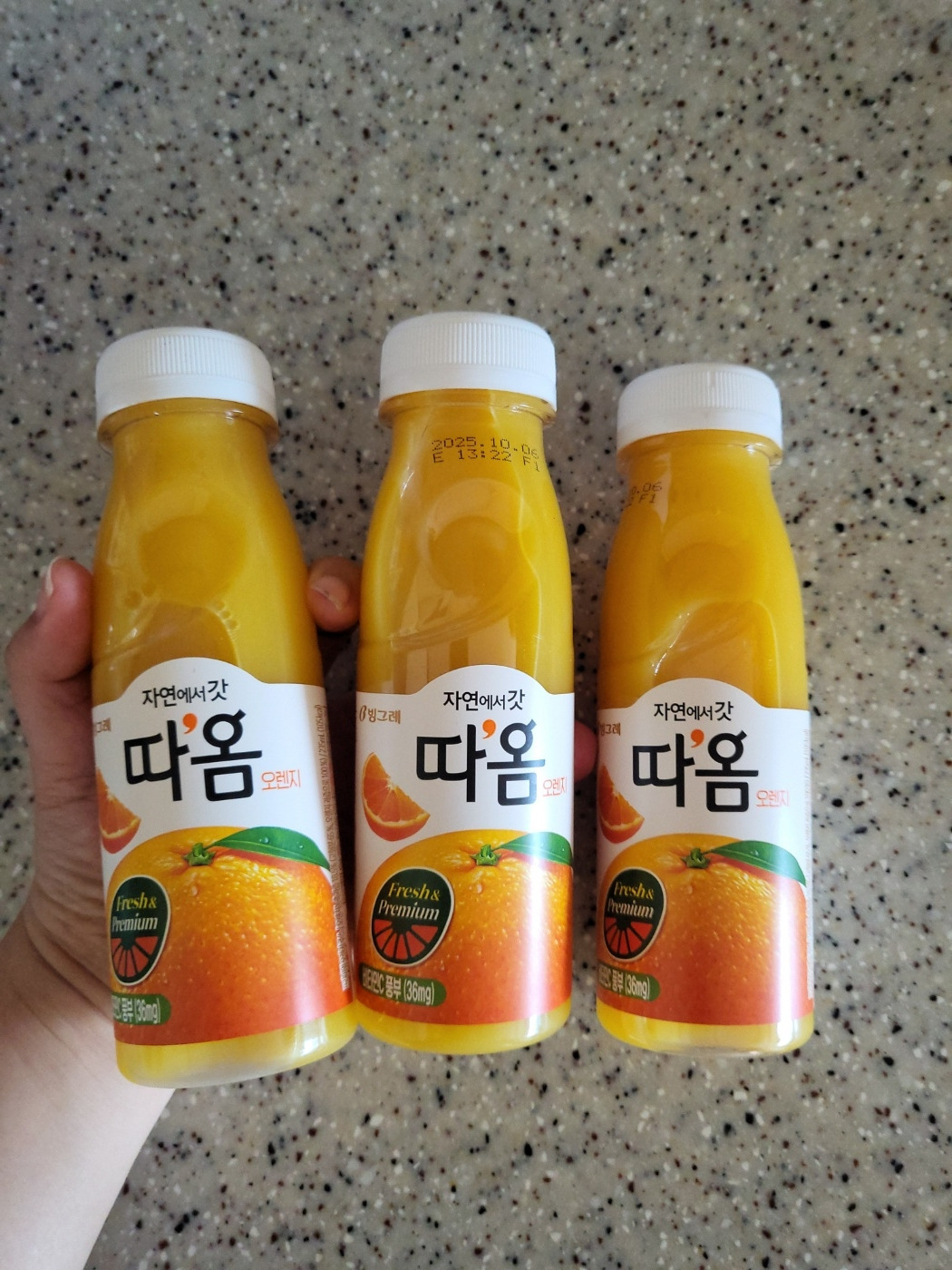 235ml 오렌지주스 3개가 든 비닐을 들고 집으로 가는 길
