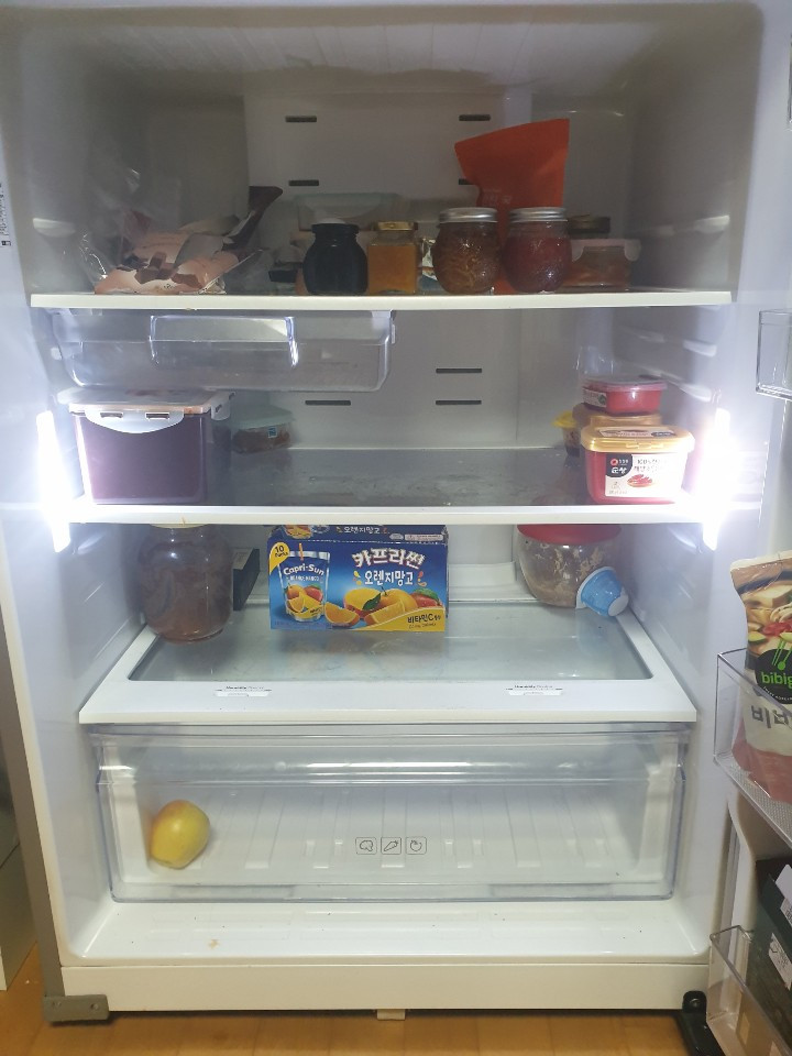 냉장고 파먹으려던 나의 계획은 수포로 돌아가고, 너무 뭐가 없어서 이참에 냉장고 청소를 했다. 다시 채우기 위한 준비 완료! 장 볼 생각에 마음이 설렌다.