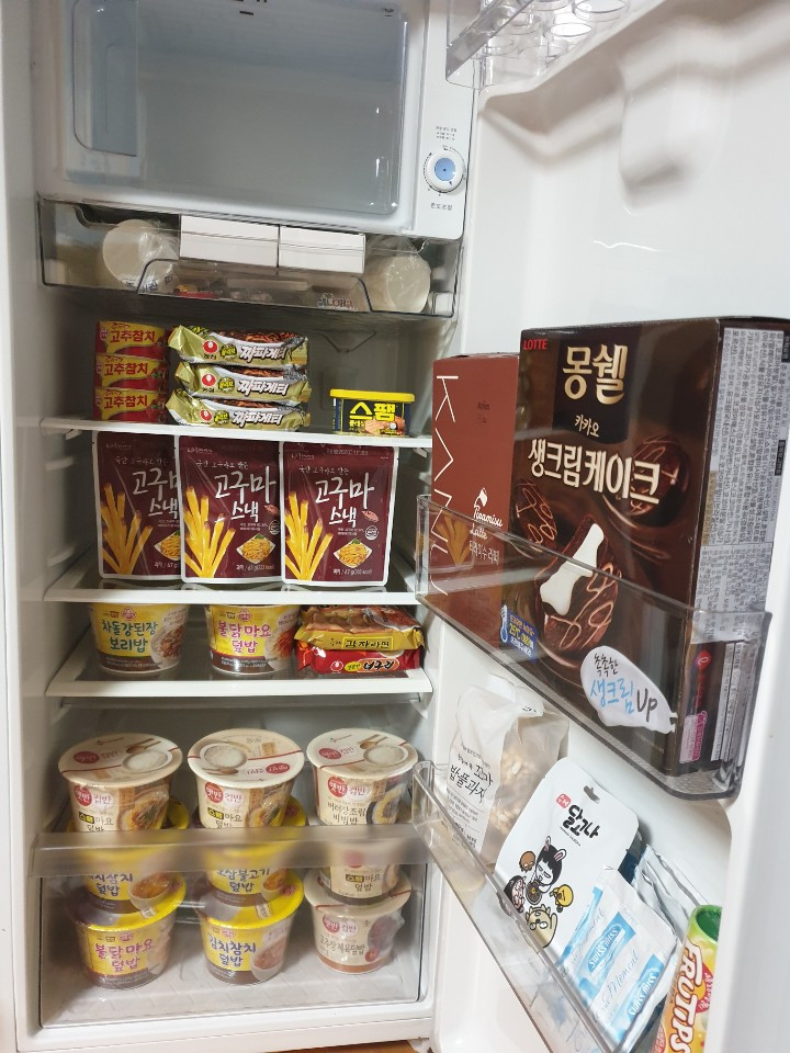 이러저러해서 나는 지금 혼자 살게 되었고, 2대의 냉장고를 갖게 되었다. 정리를 하고 싶은데 어떤 재미난 방법이 있을까 하다가 호텔 미니바처럼 나만의 스낵 냉장고를 만들어 보기로 했다. 큰 냉장고는 냉장고의 목적 그대로, 작은 냉장고는 전기 코드를 꼽지 않고 실온보관 가능한 스낵들을 넣기 시작했다. 집 여기저기 찾아보니 넣을만한 것들이 많았고, 냉장고는 생각보다 근사해졌다. 혼자서 냉장고 속을 꽉 채우고 박수를 쳤다. 내가 생각해도 굉장히 재밌고, 백수 생활에 또 하나의 즐거움을 준다.