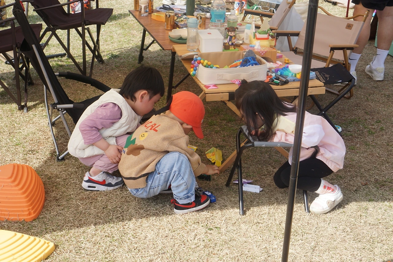 아이들은 처음에는 낯을 가려 각자의 놀이로 만남을 시작했지만 어느새, 자유롭게 뛰어놀고 있었다. 덕분에 어른들도 캠핑 준비로 분주하다. 아이들이 비로소 엄마나 아빠를 찾지 않고 그들끼리 노는 것을 보니 얼마나 기특하고 기쁜지 모른다. 놀이하면 항상 부모를 찾았던 아이들도 이렇게나 잘 놀 수 있는데, 그동안 그 기회를 못 만들어준 것이 내심 아쉽다.