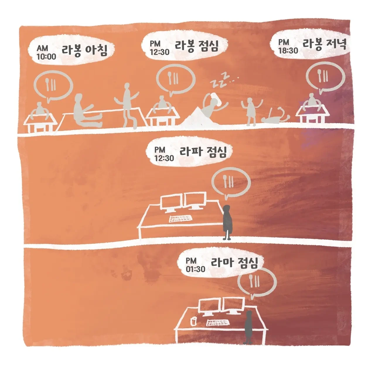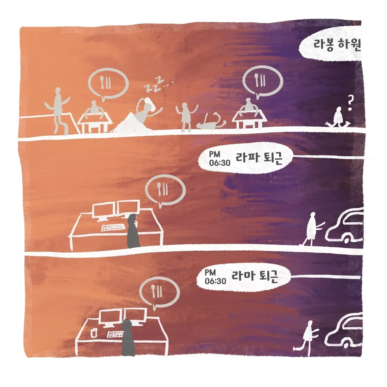 통근시간을 고려하면 아이는 엄마아빠보다 먼저 어린이집에 등원해야 했고, 하원 시간도 어른의 퇴근을 고려한 시간일 수밖에 없다. 해가 질 무렵이면 다행이고, 보통은 해가 모두 다 진 시간이다.