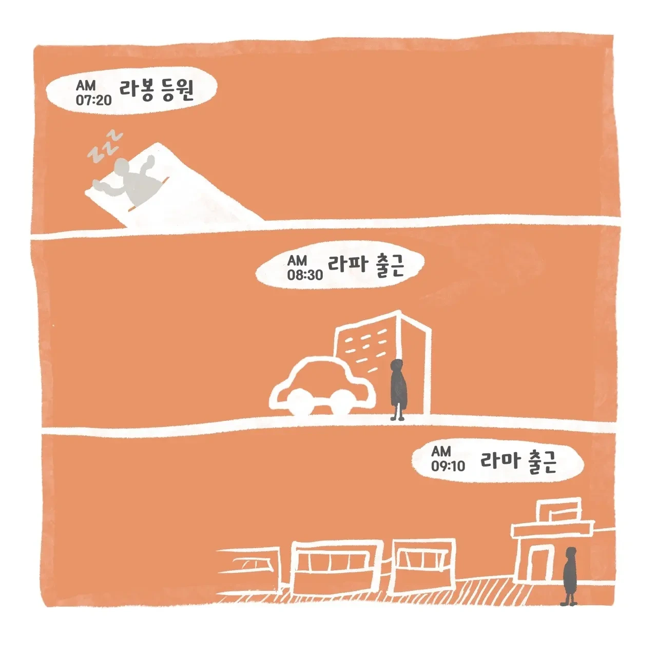 엄마의 복직일이 다가오고 있다. 어린이집 적응 겸 미리 3주 정도 일찍 등원하고, 정규시간에 아이를 보낸다. 하지만 엄마의 복직 후에는 어떤 아이보다도 오랜 시간 어린이집에 있는, 등원 1등 아이가 될 것이다.
