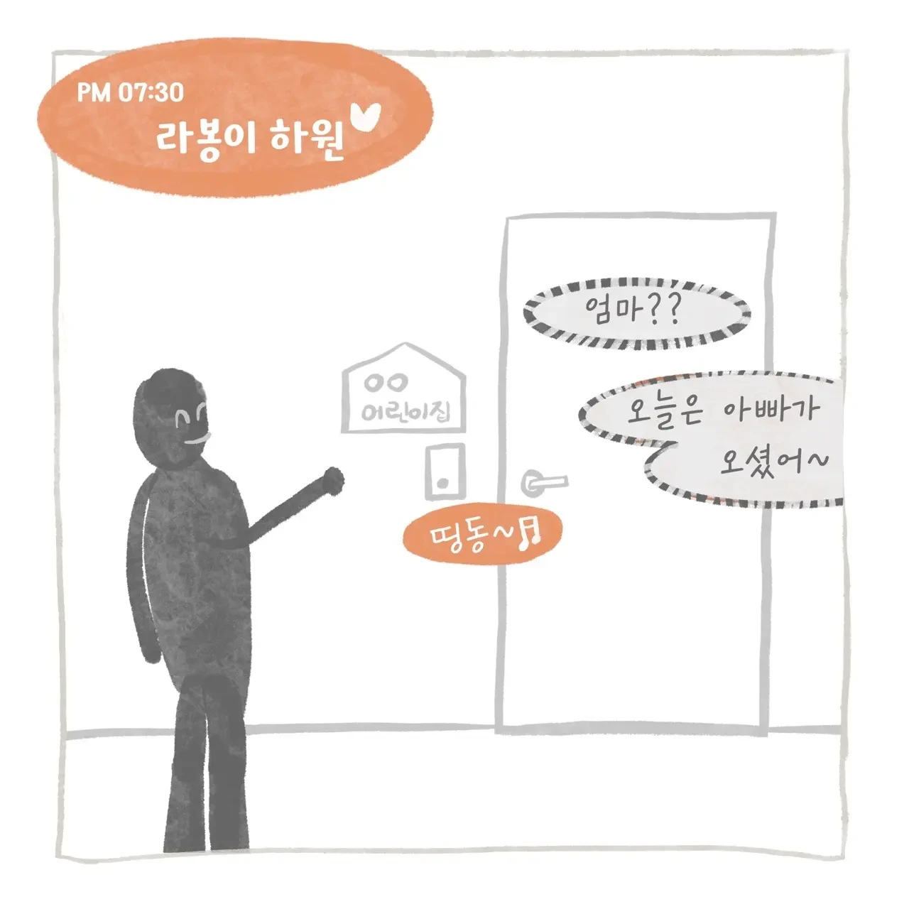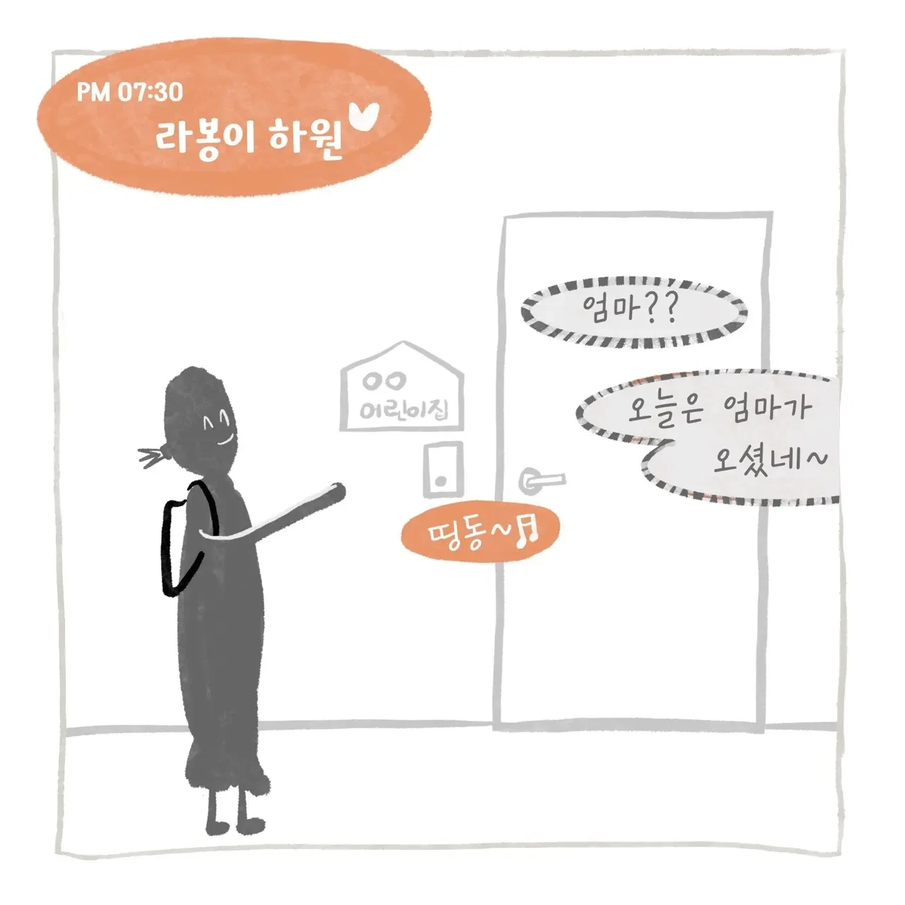 오랜 시간 봐주는 어린이집이라 다행이고, 한편으론 짠하고.