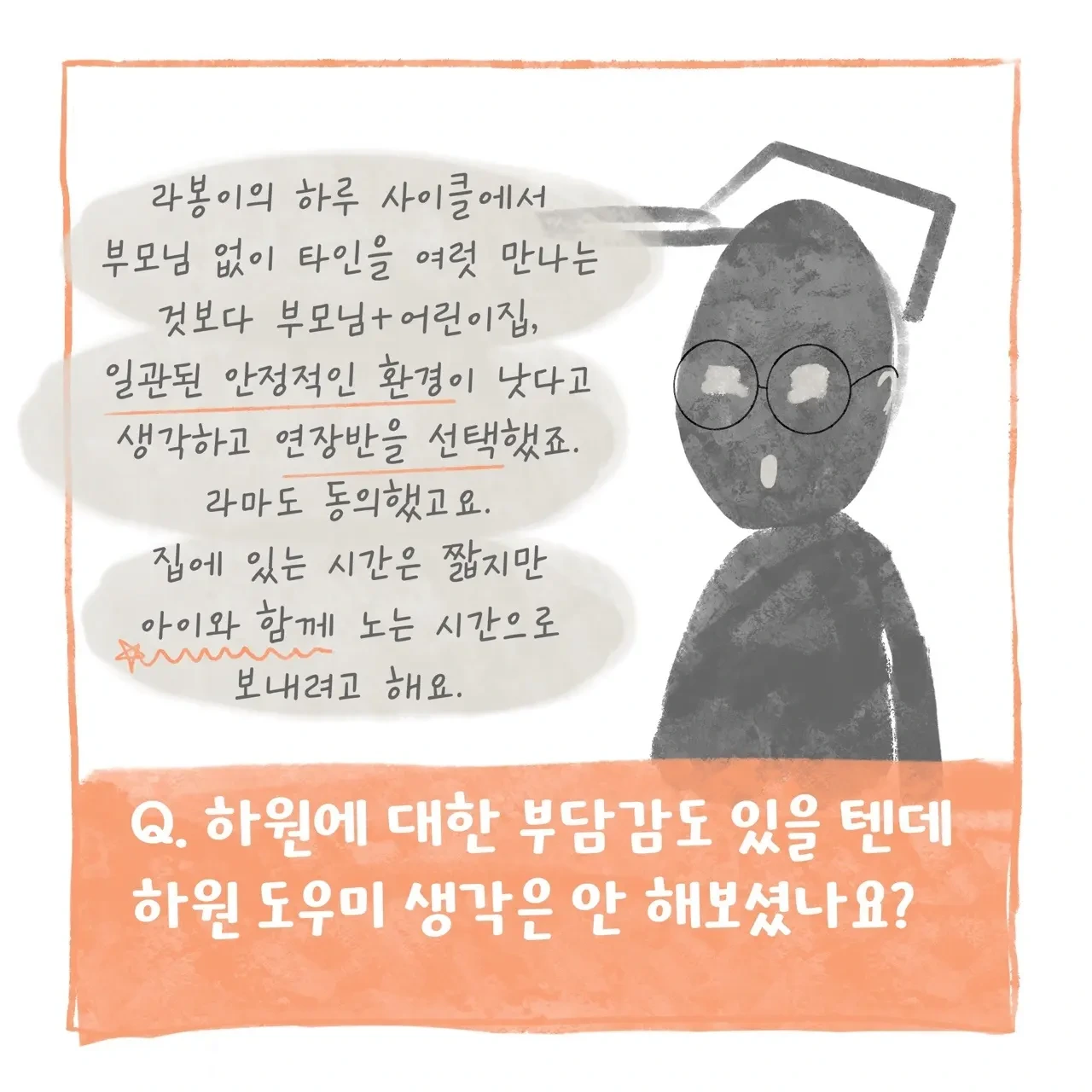 복직 준비 중 아이 맡아줄 기관을 찾는 것, 회사와 논의를 이어가는 것보다도 중요한 것은 함께 육아를 맞춰나갈 남편과의 이야기를 하는 것일 거다. 남편은 나보다 걱정이 많지 않은 스타일이고, 육아 참여도 있었기에 큰 고민은 아니었다. 다만 두 부부가 정해진 시간에 일을 마칠 수 있는 것은 아닌지라, 서로가 약속한 하원 요일과 시간을 지키려는 노력이 필요한 상황이다.