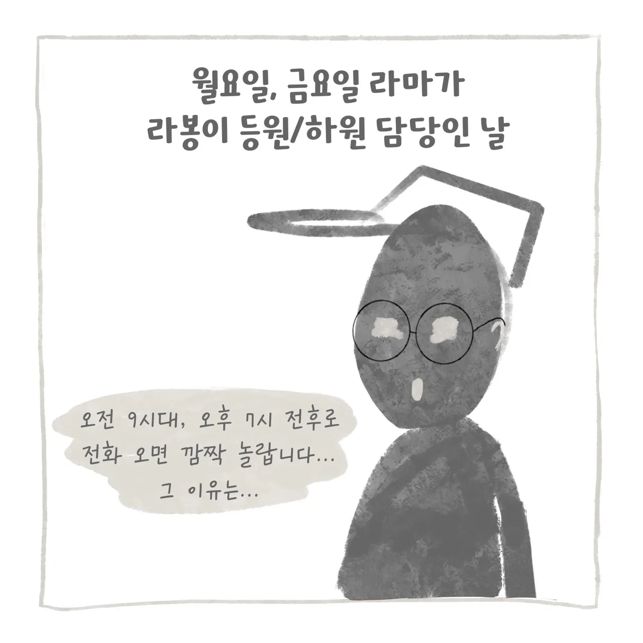 엄마의 복직 후, 어린이집 하원 스케줄은 이렇게 맡았다. 아빠인 라파는 화요일, 수요일, 목요일 일찍 퇴근해서 아이를 데리러 가고 엄마인 라마는 월요일, 금요일이다. 라마는 월요일은 재택근무, 금요일은 휴일! 주 4회 근무로 복직했기에 가능한 조건이었다. 월요일은 출퇴근 시간(비교적 차가 많은 시간)에 움직이고 금요일은 유동적으로 가능했다.