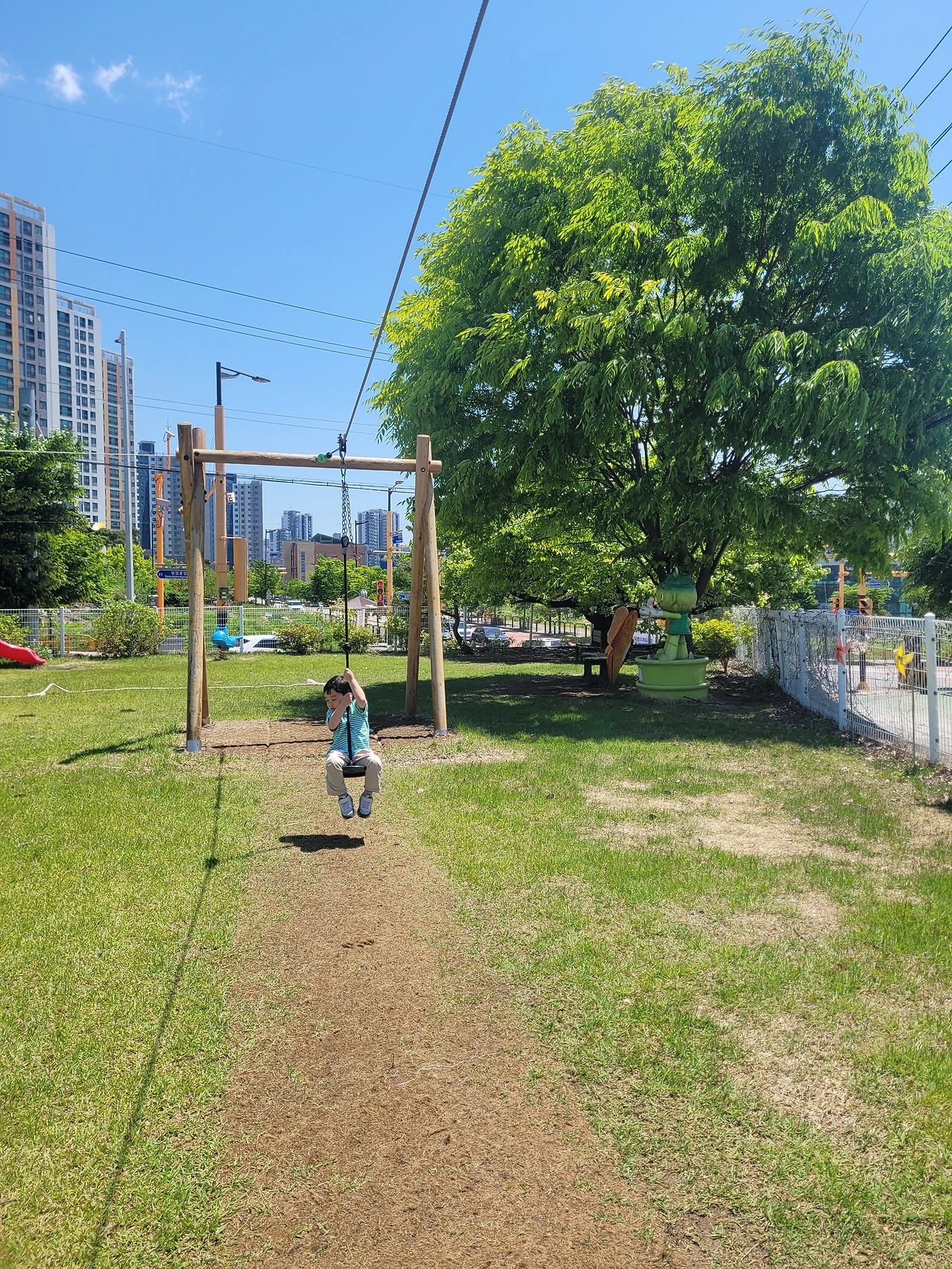 오전 수영을 마치고 바로 데리러 갔다. 생각보다 많은 아이들이 유치원에 있어서 선생님도 밥 안 먹고 가냐고 물어볼 정도였는데, 점심 먹기 전 바로 아이를 픽업했다. 동시에 돌봄 교실에 있는 친구들의 부러운 눈빛을 보았다. 보통은 우리 아이가 그 모습이었을 텐데 싶어서 마음이 좋진 않았다. 친구들의 모습과 대비되게 아이는 엄마가 왔다고 꽤 신난 모습이었다. 폴짝폴짝 뛰며 엄마를 맞이했다. 기분이 좋은 듯 유치원의 다양한 외부 시설을 엄마한테 소개해주기 바쁘다. 엄마가 육아휴직 전, 아빠랑 하원할 때 했던 놀이들이다. 날씨 좋은 날, 낮시간에 오롯이 엄마랑 둘이 놀이할 수 있으니 아이는 꽤 신이 난 모양이었다. 배가 고픈 엄마가 얼른 가자고 말하기 전까지는 갈 생각이 없었다. (ㅎ) 아이랑 브런치 카페에 가려고 마음먹었는데, 아이는 그저 유치원 놀이시설을 엄마에게 소개해 주고 싶었던 것이고, 같은 시간 다른 마음이었다. 동상이몽이었다. 그저..(ㅎ)