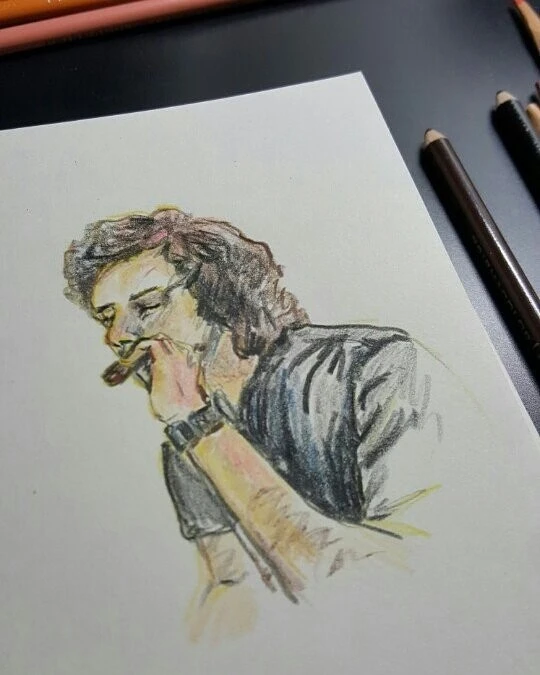 사진은 그가 '영혼의 친구'이자 '선생님'이라고 생각한다는 40대 친구와 함께 있던 자리에서 시가를 피우던 모습을 그린 것.