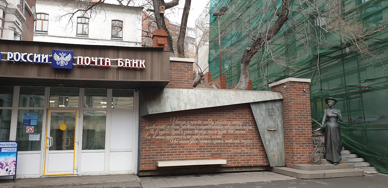 커피로 체력을 보충한 뒤 금문교 쪽으로 조금 더 걸어올라갔다. 길 도중에 작지만 화려한 17세기 러시아 양식의 블라디보스토크 우체국이 있었고 바로 옆에 모자를 쓴 부인의 동상이 있었다.