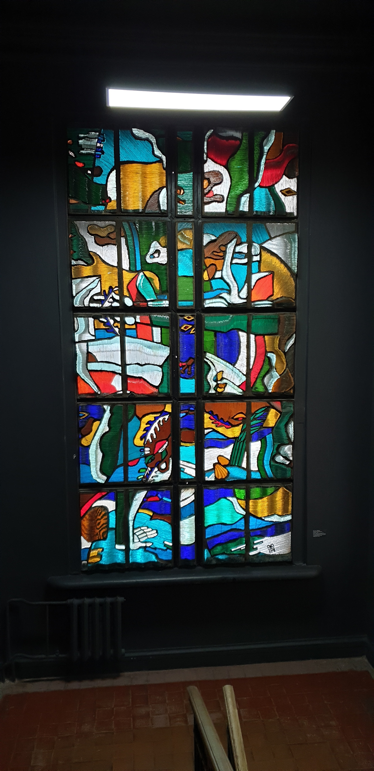 유리를 층층이 쌓아 만든 스테인드글라스. 손이 베일 것 같았다.