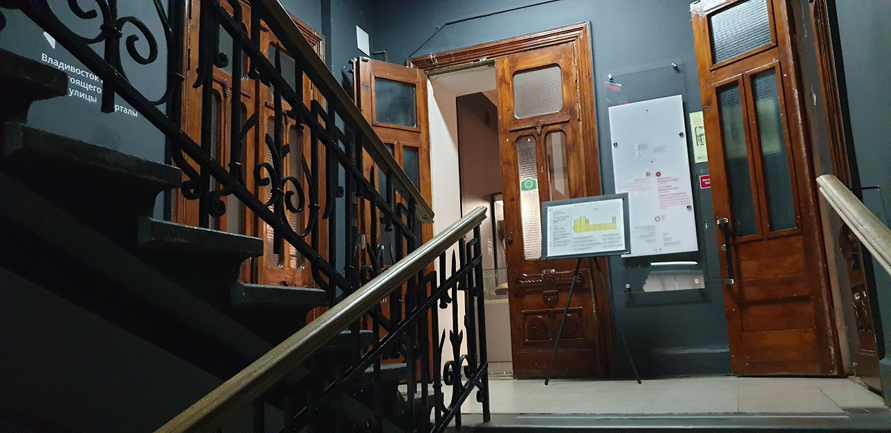 사실 전시 내용보다 더 눈에 들어왔던 것은 건물 그 자체였다. 이 박물관은 블라디보스토크 기차역과 항구 종합터미널을 따라 번화가인 아르바트 거리 방향으로 쭉 올라오는 대로, 현 연해주 정부청사 바로 맞은편에 세워져 있다. 19세기에는 사업가 바빈체프의 임대 아파트였다고 하는데 마치 강남 한복판에 있는 최고급 아파트 같은 곳이었을 것 같았다. 그런데 정말 보수를 하나도 안했다. 너무나 예쁜 타일로 꾸며져 있는 바닥 곳곳에는 금이 가 있고, 고풍스러운 계단은 곳곳이 깨진 그대로였다. 사실 블라디보스토크의 대부분의 건물이 마찬가지다.