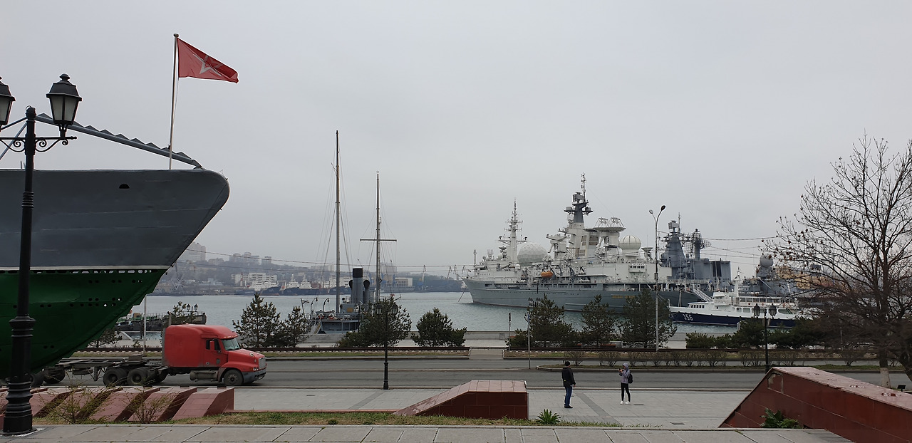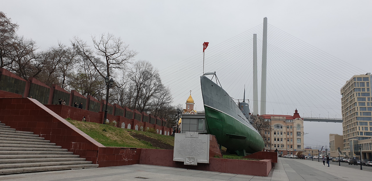 정말 놀랍게도 관광지 바로 옆에 태평양 함대 사령부 건물이 있었다. 무장한 군인들이 구호를 붙이며 딱딱한 걸음으로 행진했다. 차도 하나를 건너면 거대한 군함들이 줄지어 서 있는 항구가 있다. 군함들이 가끔 큰 기적 소리를 내며 시커먼 엔진 연기를 내뿜는다. 그러면 바다에서 불어오는 바람을 타고 엔진 연기 냄새가 온 도시를 가득 메운다. 어제 밤에는 그 냄새가 좀 역겨웠는데 하루 지났다고 좀 적응이 됐는지 ‘이게 블라디보스토크의 냄새같다’는 생각이 들었다.