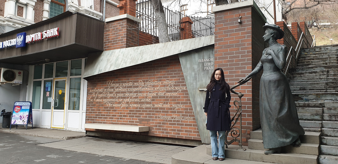 이 여성은 1984년 남편을 따라 블라디보스토크로 건너 온 미국 여성 엘레아노르(엘리너) 프레이다. 엘레아노르는 1930년까지 미국에 살면서 블라디보스토크에서 보고 겪은 것, 국가와 도시, 이곳에 거주하는 사람들에 대한 편지를 1만6000쪽이나 썼다. 아까 다녀온 박물관에서도 ‘엘리너 프레이, 블라디보스토크에서 온 편지’라는 제목으로 그에 대한 기획 전시를 하고 있었다. 엘레아노르의 편지 안에는 블라디보스토크에서 일어난 혁명, 전쟁, 내란에 대한 기록은 물론이고 그가 이 도시를 얼마나 사랑했는지까지 드러난다고 한다. 미국 여성이라고 해서 당연히 편지가 영어로 쓰여있을 거라고 생각했다. 드디어 이 알 수 없는 키릴 문자 사이에서 무슨 말인지 알아볼 수 있는 문서를 보겠구나 기대하며 전시관으로 달려갔는데, 36년 동안이나 블라디보스토크에서 살았던 엘레아노르는 러시아어에 너무 능통했다......