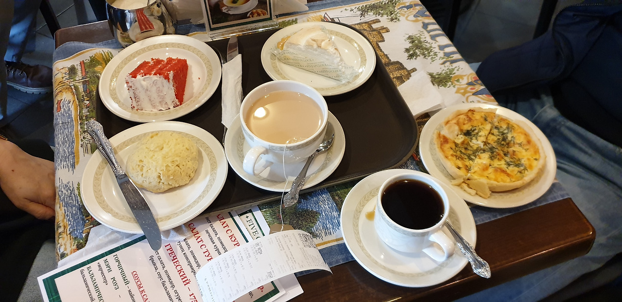 아르바트 거리에는 ‘5 o’ clock’이라는 작은 베이커리 카페가 있다. 영국 콘셉트라고 하지만 굉장히 러시아 동네 맛집 같은 느낌이다. 좁은 가게 안에는 테이블이 정말 다닥다닥 붙어있었다. 많은 현지인들이 아점을 즐기고 있어서 역시 잘 찾아왔구나 싶었다.