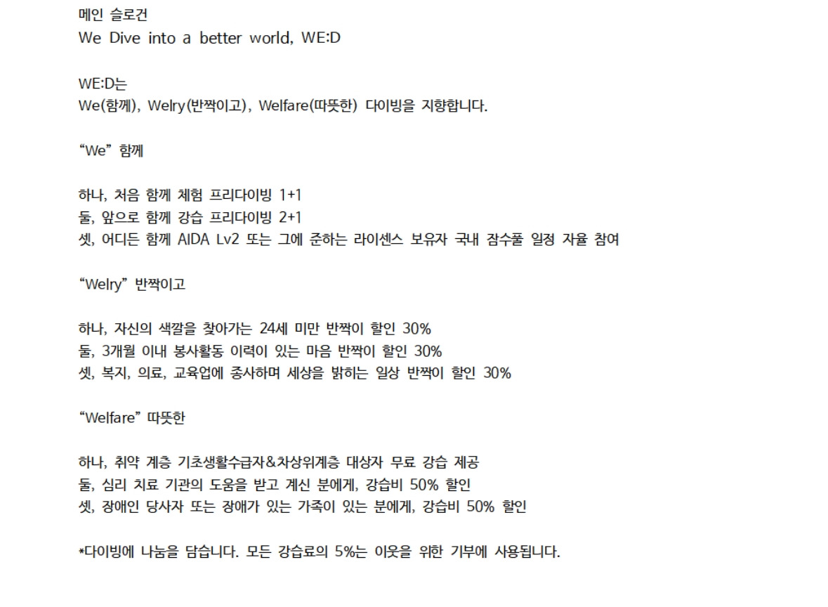 프리다이빙 소모임에 대한 구상안을 초안을 보았다.