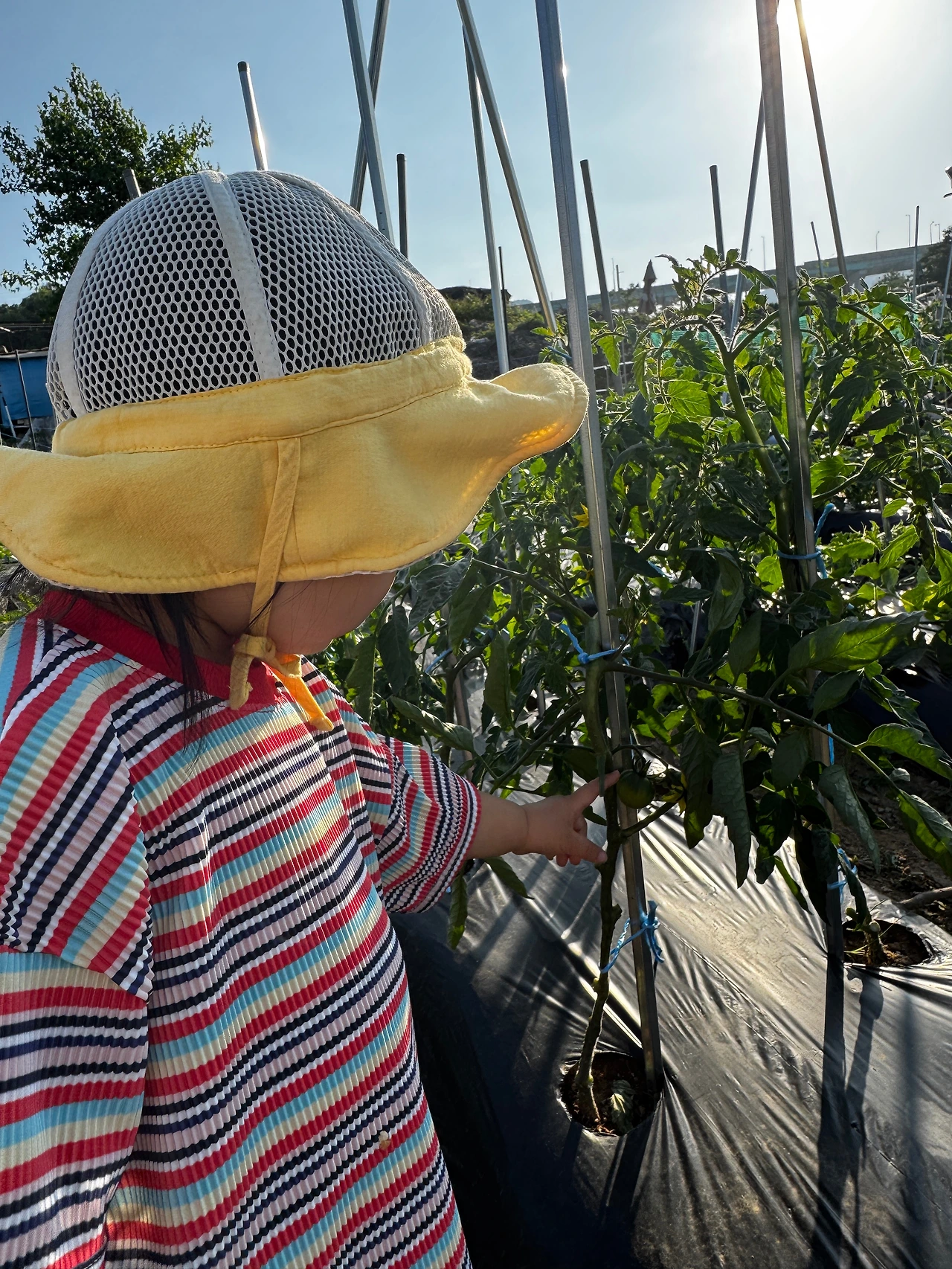 우리는 그렇다 쳐도 아이는 무슨 잘못이란 말인가. 똑같이 반팔차림에, 나름 아기니까 선크림은 챙겨 발랐는데 모자가 얼굴을 가려주기에는 턱없이 부족해 보였고, 여전히 이유는 모르겠으나 아기가 늘 ’빤작별‘이라고 부르며 신는 나이키 운동화는 얼룩덜룩 흙 범벅이 된 지 오래다. 이러니 어린이집 흰둥이들 사이 유일한 깜둥이가 우리 딸이 될 수밖에. ‘엄마가 미안하다’ 어린이집에사 올라온 사진들을 볼 때마다 마음속으로 사과하지만 또다시 이렇게 놀이터 대신 텃밭으로 두 돌 아기를 데리고 다니는 엄마가 나였다.