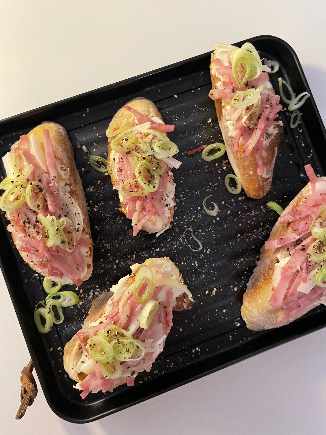 바로 '베이컨 키리 치즈 타르틴'이었다.