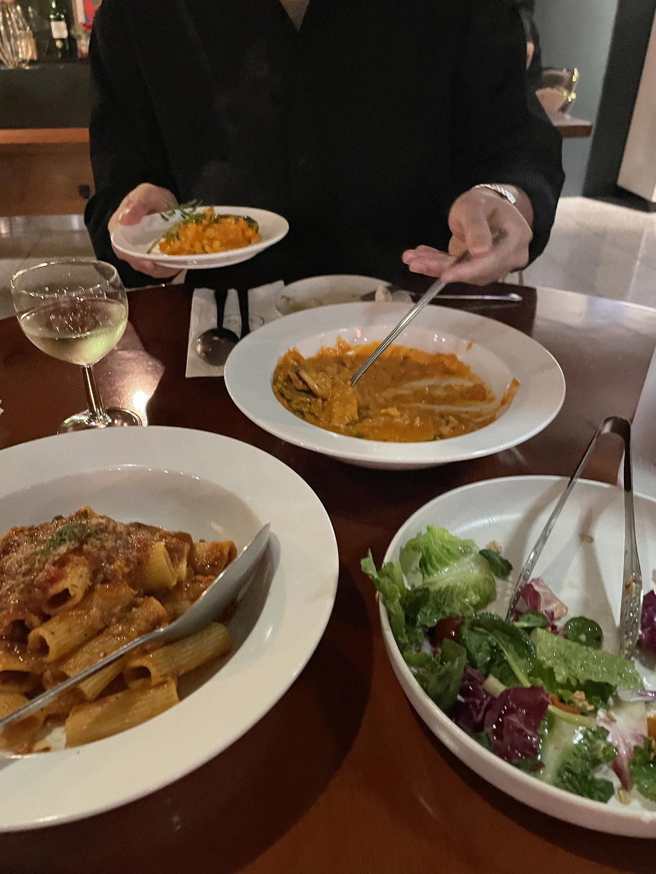여자친구의 접시에 먼저 음식을 덜어주는,