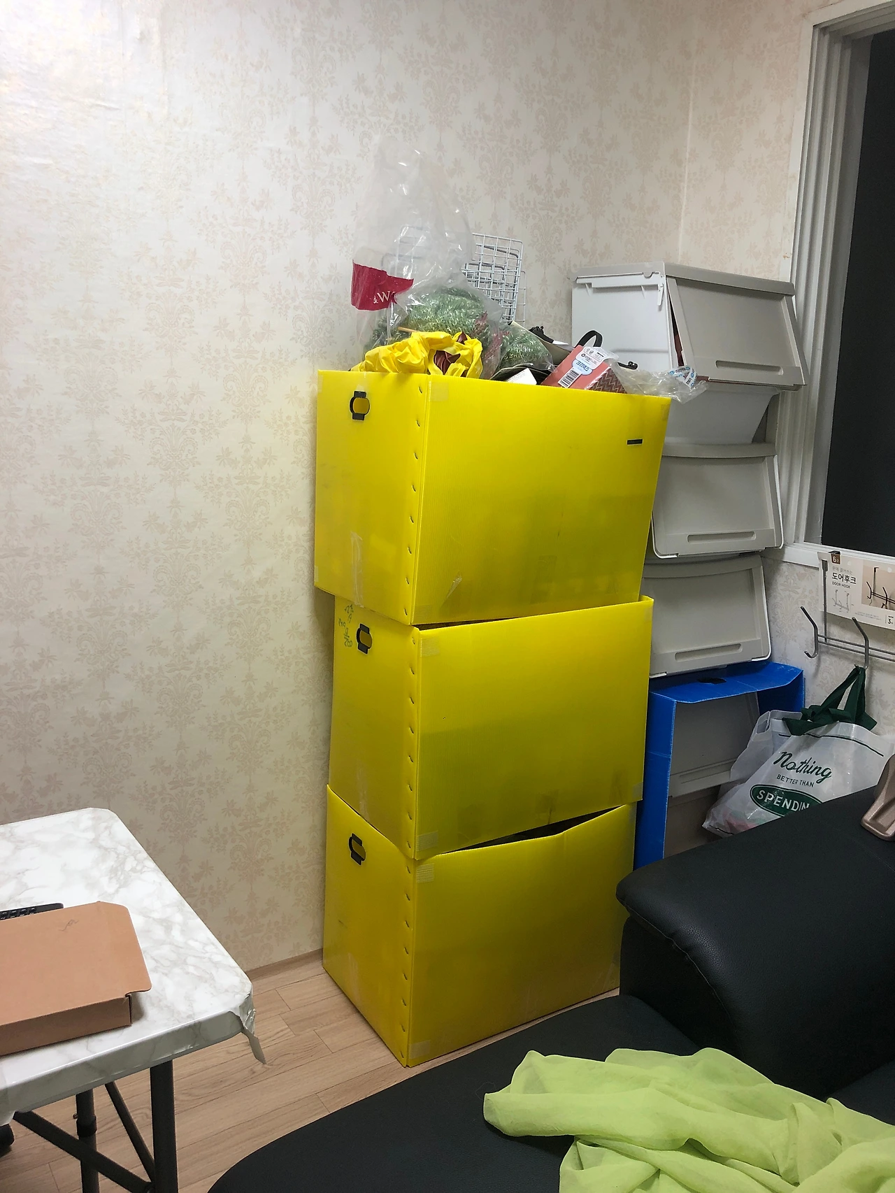 아직 수납할 가구를 구비못해서 박스로 쟁인것이..
