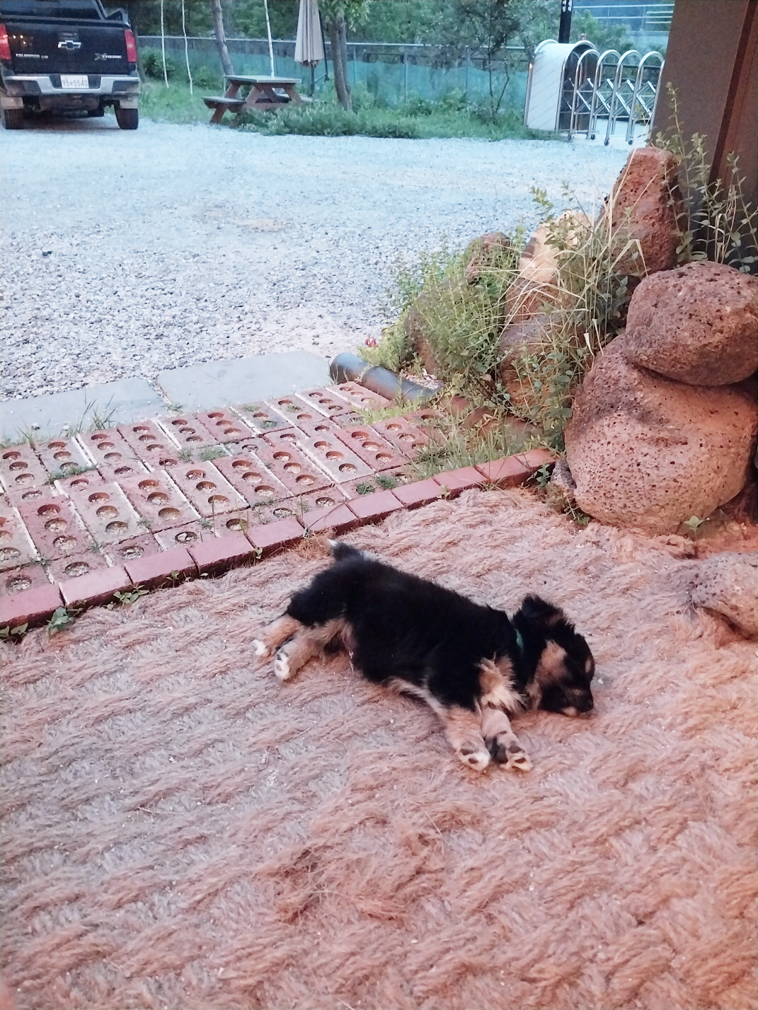 할부지 수박넝쿨 물어뜯어서 줄에 묶였다는..