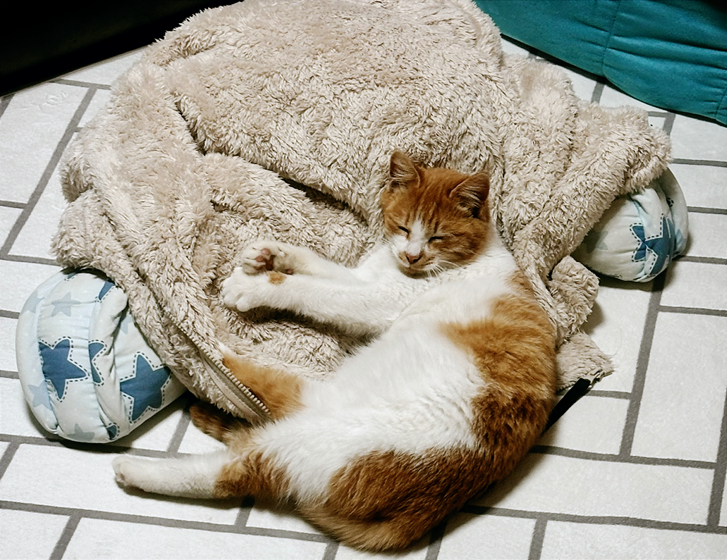 난방비 폭탄을 맞아 충격이 가시지 않은 집에서의 꿀잠.