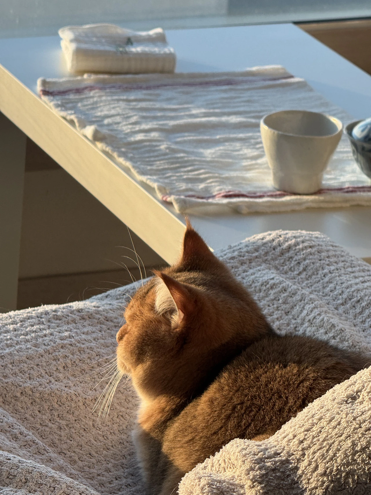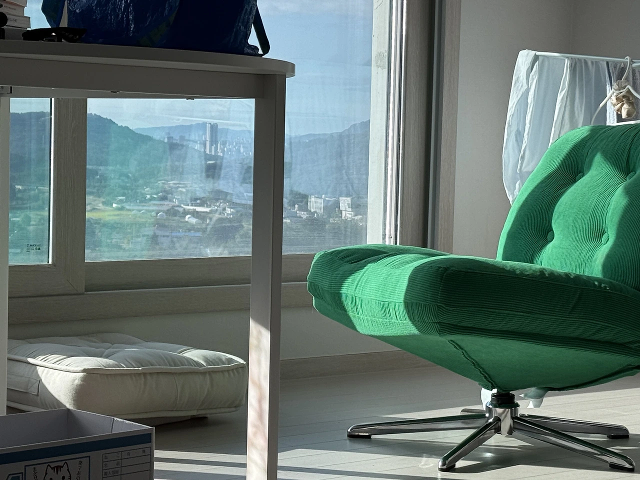 햇볕이 잘 비추는 거실 소파에 반쯤 누워 있었다.