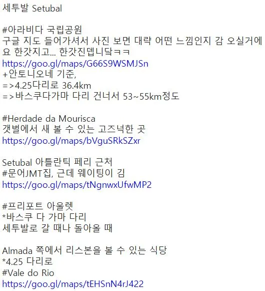 이번 여행을 앞둔 언니에게 리스본 근교 지역으로 세투발(Setubal)을 권했는데, 나와 함께 가게 될 줄은 몰랐다. 이곳을 다시 갈 거라고 생각했지만, 언니와 같이 간단 사실이 참 기뻤다. 설레는 마음으로 정말 가야 할 곳만 리스트업을 해 두었다.