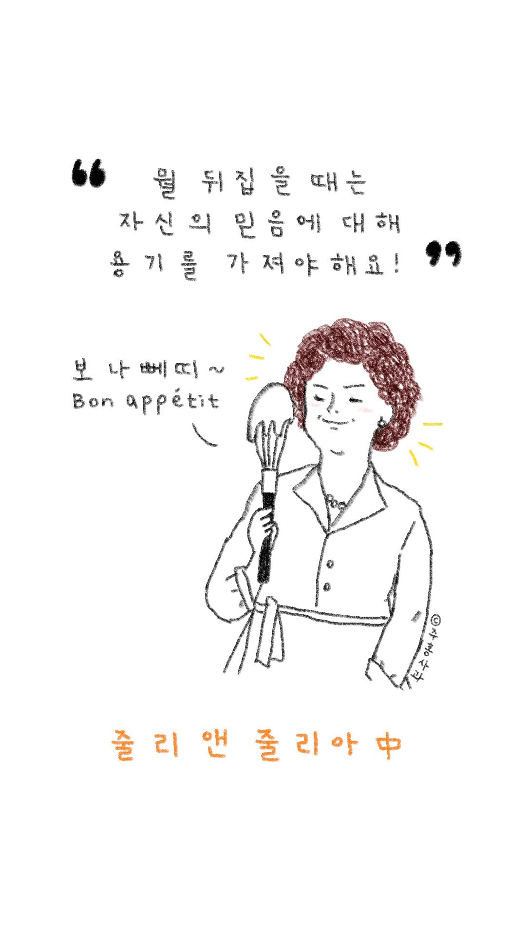 영화 속 '줄리'와 '줄리아'라는 두 여인은 요리를 통해 잃어버린 자아를 찾아가는데, 어쩐지 나는 그 반대인 것 같다. 양가 어른들께 심려를 끼쳐가며 내 자아를 충분히 챙기고 있으니, 이제는 가족들을 챙길 차례이다. 설날에 늘 의무처럼 먹는 산적이나 생선전 말고, 새로운 프랑스 요리를 먹으며 새로운 설날의 풍경을 만들어가고 싶다.