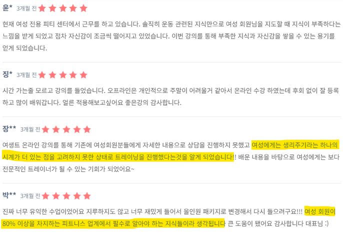 그래야 진짜 내 것이 되고, 여성 회원님들께 효과적인 코칭을 제공할 수 있기 때문입니다.
