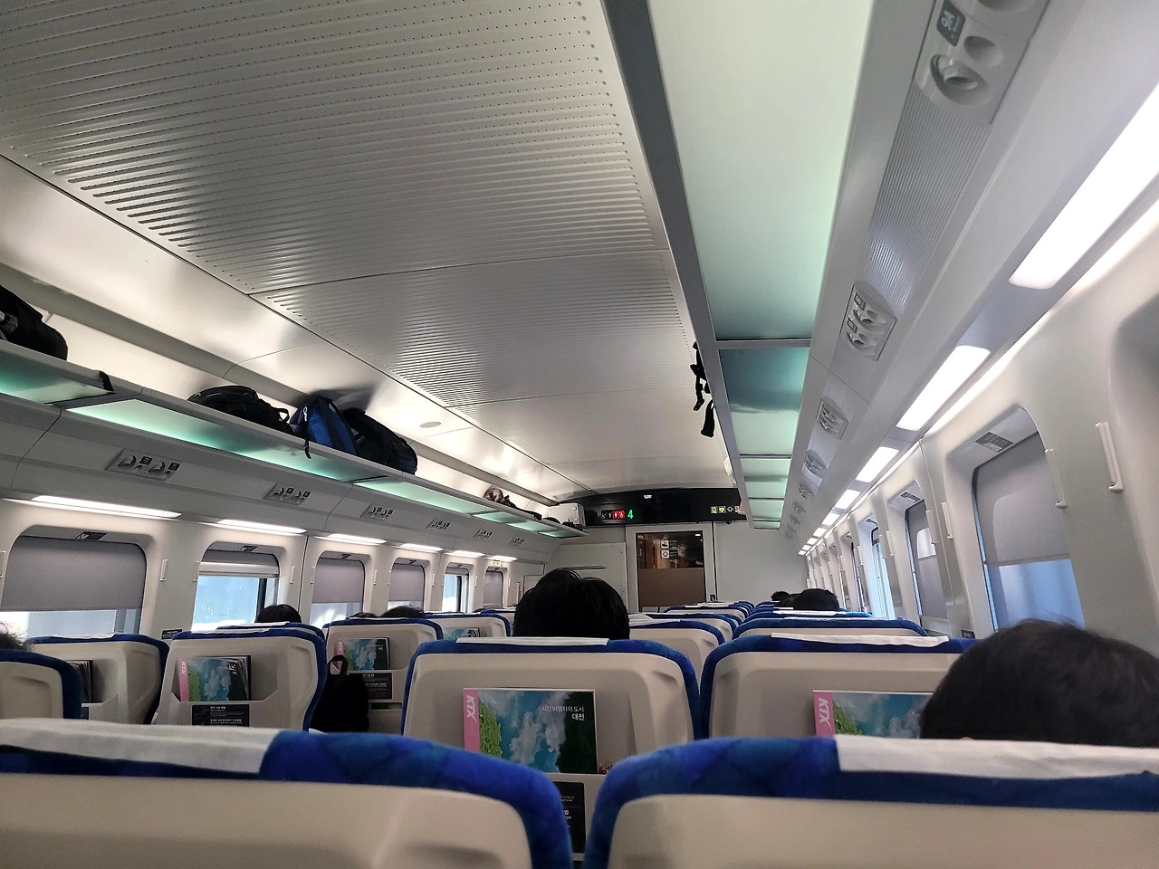 강릉행 기차 플랫폼으로 이동했다. 육중한 몸매의 기차가 나를 기다리고 있었다. 그 자체로 듬직하다. 매주 서울역과 동대구역을 오갈 때 그 위용을 보며 멋있다는 생각을 해 왔다. 그동안 탔던 KTX와는 외부디자인이 완전 다르다. 색깔과 크기가 더 안정감을 주면서 마음이 끌렸던 기차였다. 내부를 기대하며 차에 올랐다. 먼저 눈에 띄는 것이 의자가 모두 정배열이다. 실내 인테리어 색이 밝다. 내 자리를 찾아서 앉았다. 의자 간격도 일반 KTX에 비해서 상대적으로 더 넓다. 내가 탔던 서울과 동대구를 오가는 KTX에 비해서 여러 점에서 더 좋다. 멋지고 듬직한 외관에 쾌적한 실내, 기분이 좋아진다.