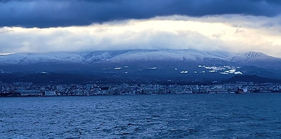 갑판에 올라서니 멀어지는 제주시의 풍경이 한눈에 들어왔다. 그 뒤로 우뚝 솟은 한라산은 정상이 온통 하얀 눈으로 덮여 장엄한 자태를 뽐내고 있었다. 섬 밖으로 나와서야 비로소 온전히 보이는 섬의 얼굴, 그 풍경에 취해 셀카를 찍고 다시 카메라를 눌렀다. 바다 위에서 바라본 '눈 덮인 한라산'은 이번 여행이 준 최고의 선물이었다.