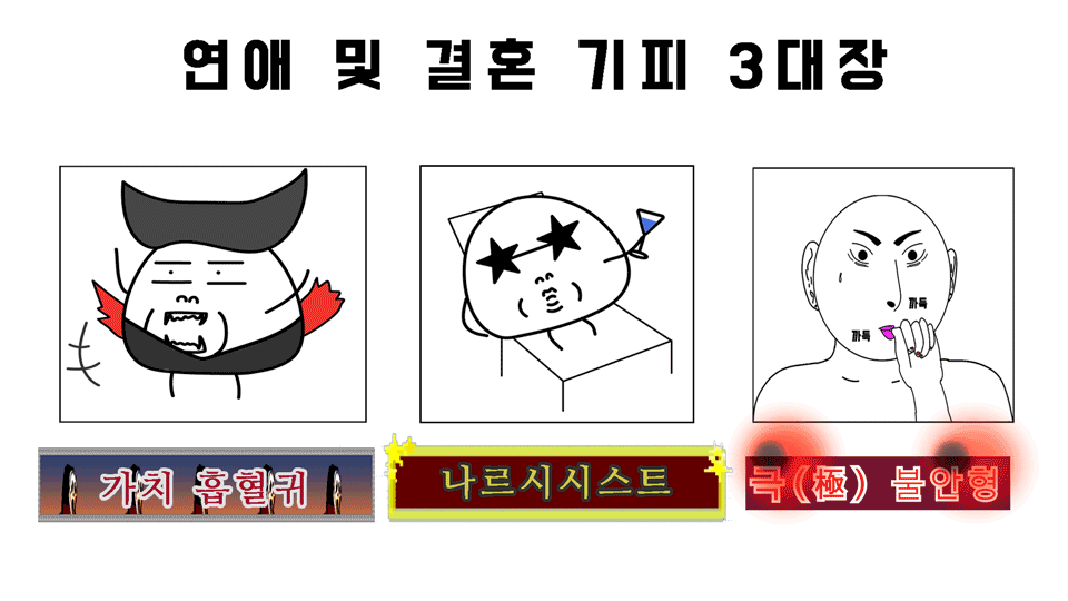 애정결핍 (가치흡혈귀, 나르시시스트, 극불안형) 대상이 바뀌려면 스스로 알을 깨고 나와야 하고 살가죽을 수백 번 벗기고 견디는 무의식 탈바꿈이 있어한다. 하지만 이별도 무서워하고 이성과 관계를 끊기 무서워하고 자극적인 것만 추구해서 이성 없이는 못 사는데 살가죽을 수백 번 벗기는 고통 견딜 수 있다고 생각하는가? 못 견디고 스스로 봉합을 못했기에 애정결핍이 심해진 것이다.