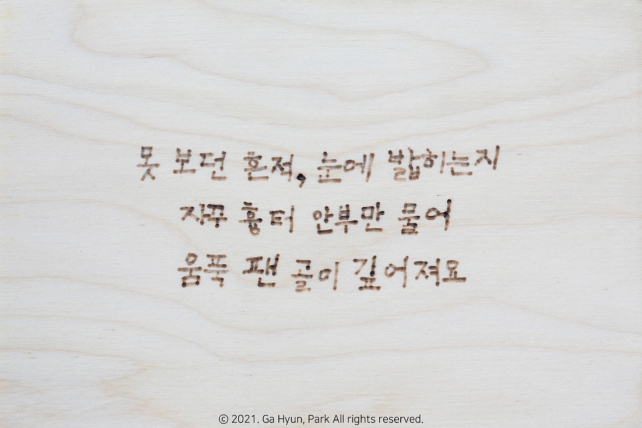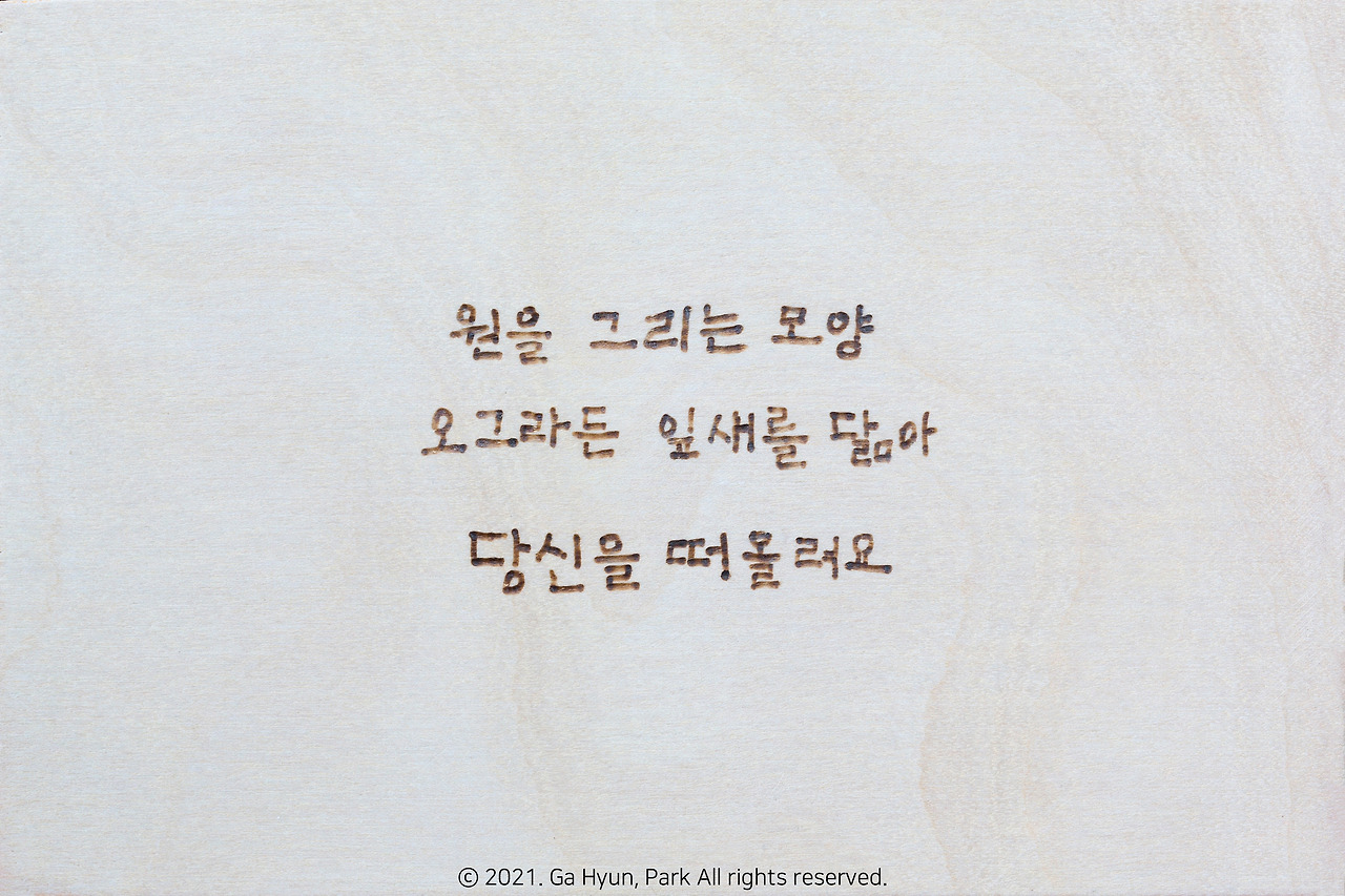 같아질 순 없으니 한없이 비슷하고 싶었다. 그래서 닮은꼴 그림자를 찾기로 했다. 바닥에 떨어진 마른 잎들을 집어 모아보았다. 그리고는 내 상처를 드러내 마른 잎 하나를 올렸다. 그림자의 모양을 맞추었다. 서로의 그림자가 얽혔다. 내 상처를 덮어주는 게 마치 위로처럼 느껴졌다. 떨어져 나간 딱지 같기도 했다. ‘우리’가 된 것 같았다.