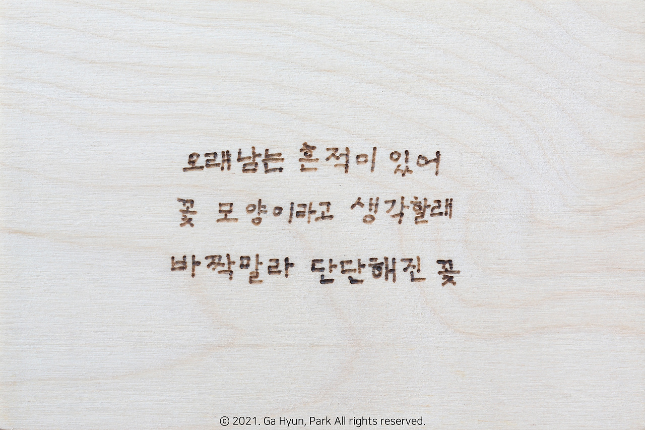식물의 상처는 사람보다 더 쉽게 정리되고 가꾸어지곤 한다. 흉터는 ‘상처가 치유되고 남은 흔적’이기에, 그 자체로 잘 살아냈음을 방증한다. 가장 깊이 새겨진 삶의 역사이기도 하다. 식물의 상처, 잔뿌리, 마른 잎 또한 마찬가지다. 썩지 않고, 몸의 일부를 포기하면서라도 살아내겠다는 의지가 보인다. 그래서 나의 반려들은 꾸며지기보다는 자유롭다.