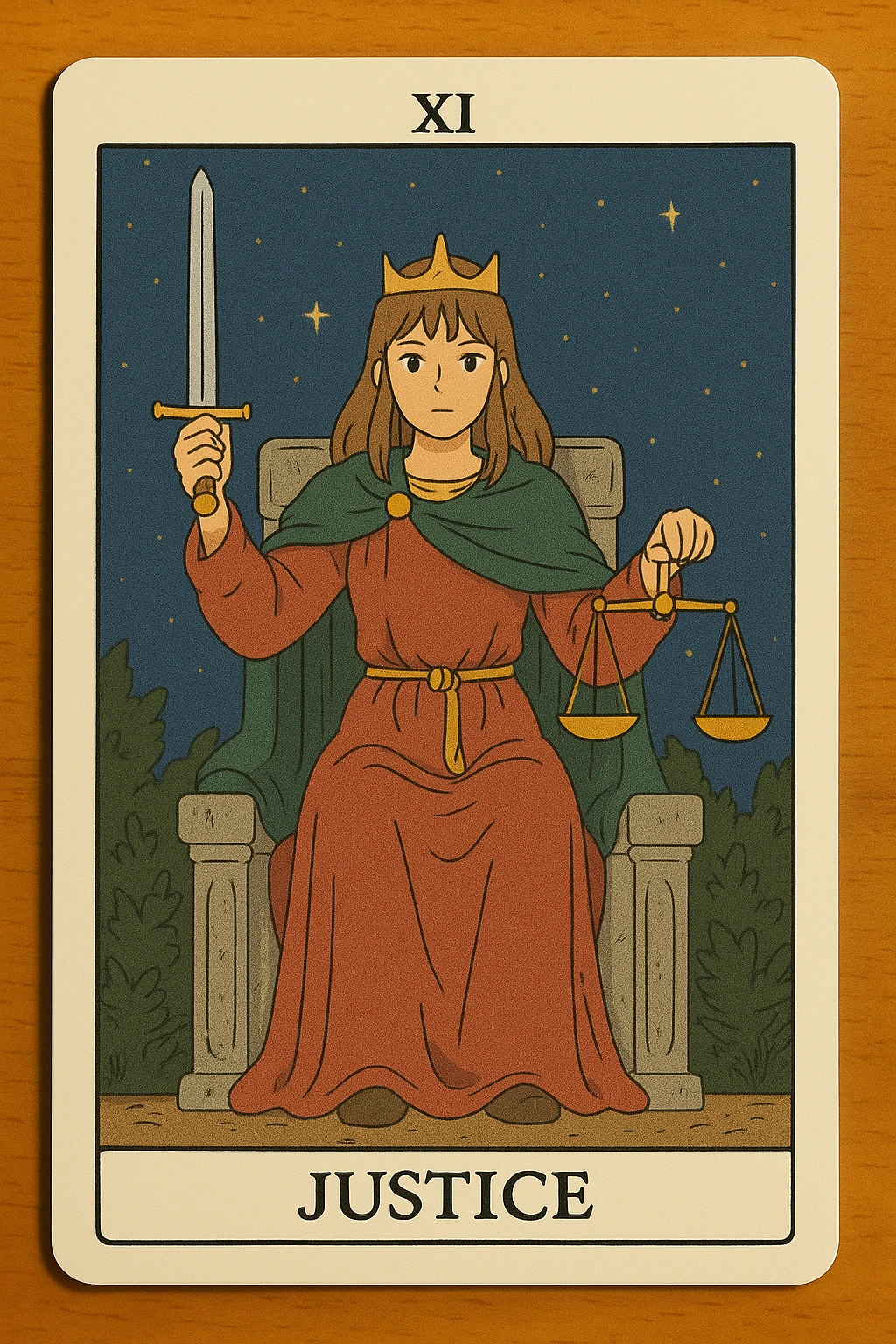 이 카드는 공정함과 책임, 그리고 선택을 상징합니다.