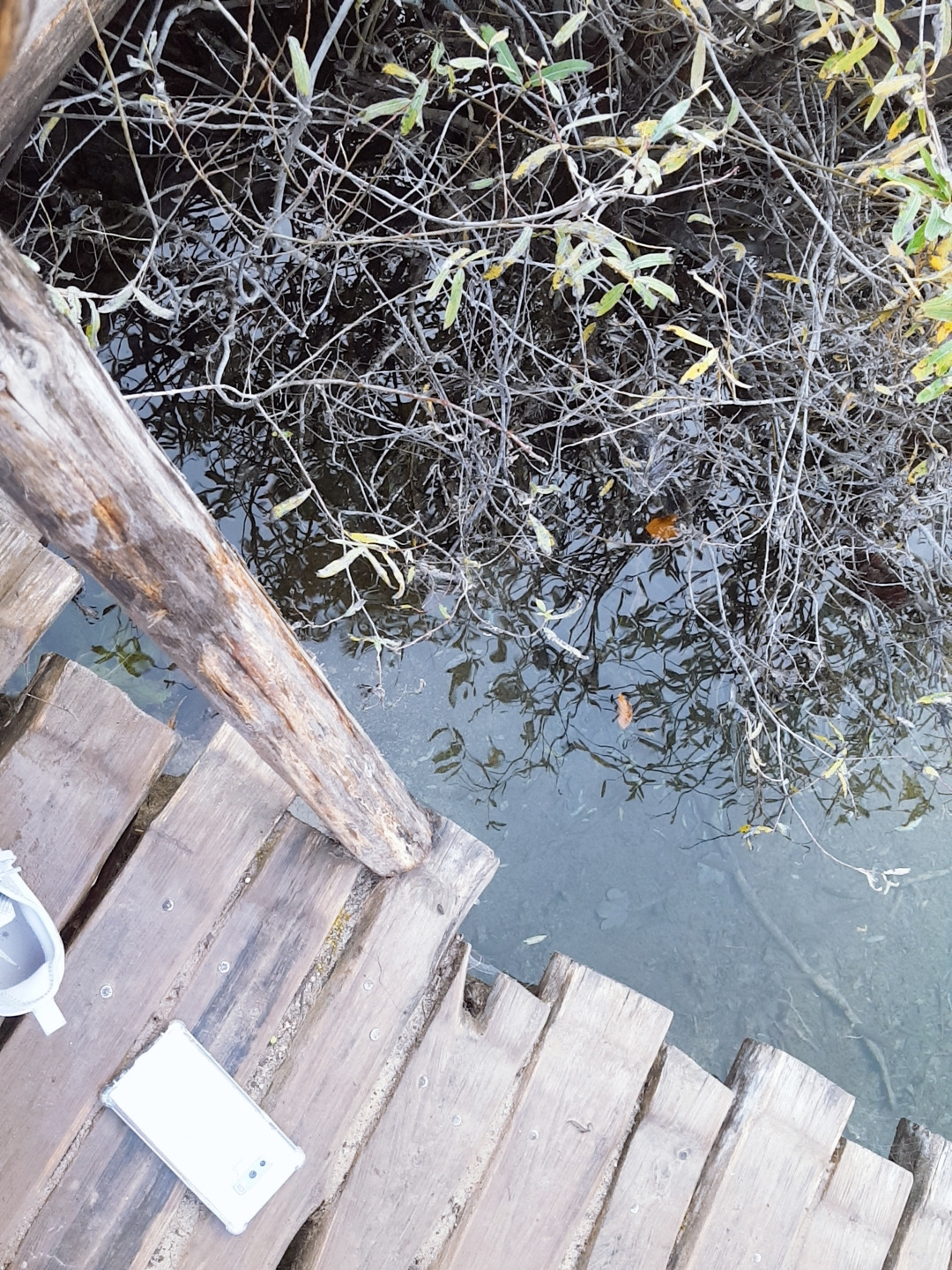 그 플리트비체 폭포 아래 호수로 정현이 양말을 벗고 들어갔다. 핸드폰을 떨어뜨렸기 때문이다. 호수와 호수 사이는 나무 널판지를 대어 길을 만들어 놨는데 널판지와 널판지 사이 약간의 틈이 있다. 그리고 널판지의 가장자리엔 아무 보호 장치가 없다. 누군가 밀면 빠지는 구조. 대신 시야가 툭 트인다. 뭔가 빠질까봐 살짝 불안한 마음이 들었는데 실제 걱정했던 일이 일어난 것이다.
