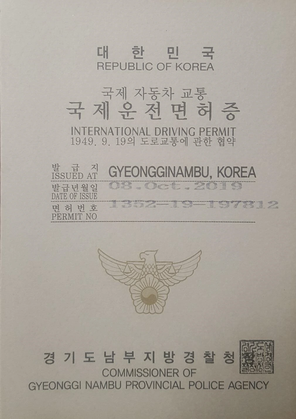2019년 10월 15일. 대한항공 919편으로 대한민국을 떠났다.