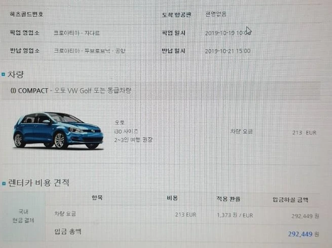 렌트카 예약 완료, 국제운전면허증 준비 완료