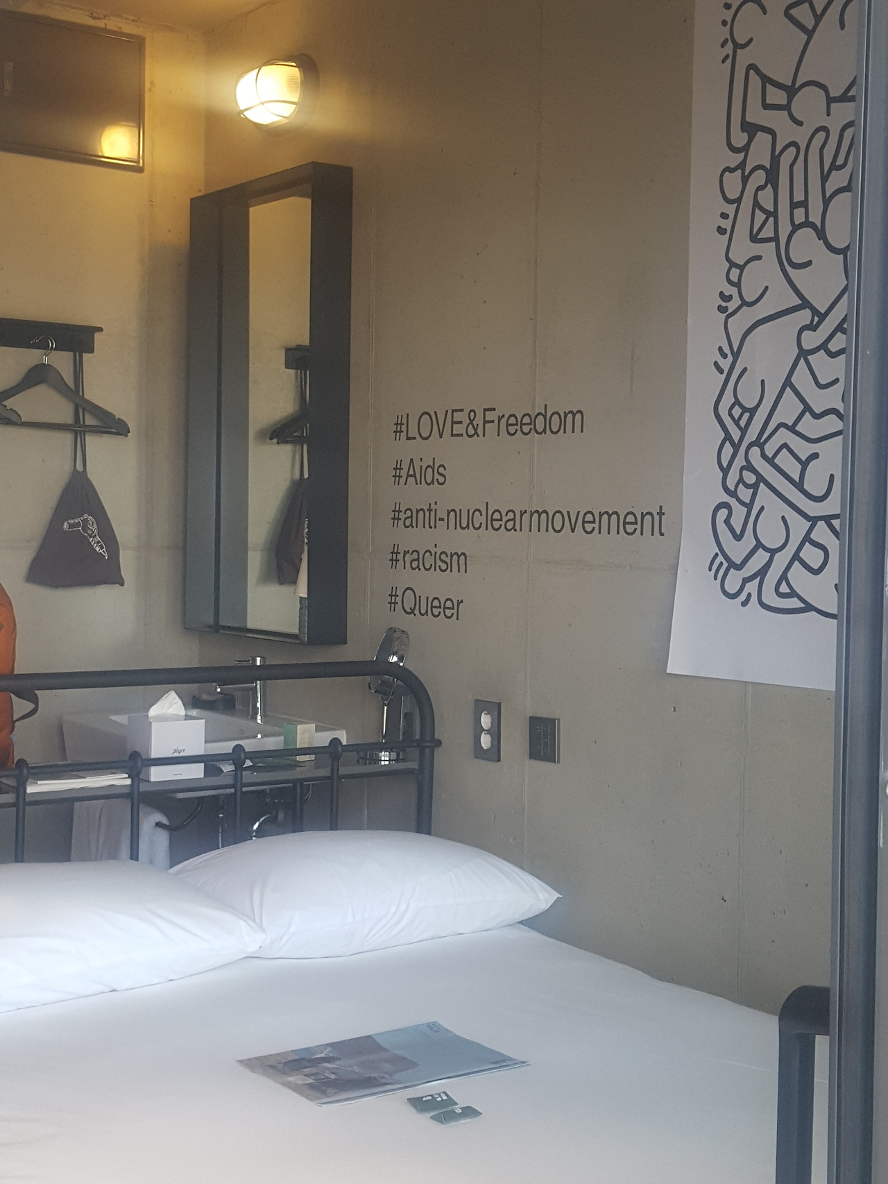 벽에 외국 작가의 그림들이 붙어 있다. 뽀송한 침구가 기분 좋게 한다.