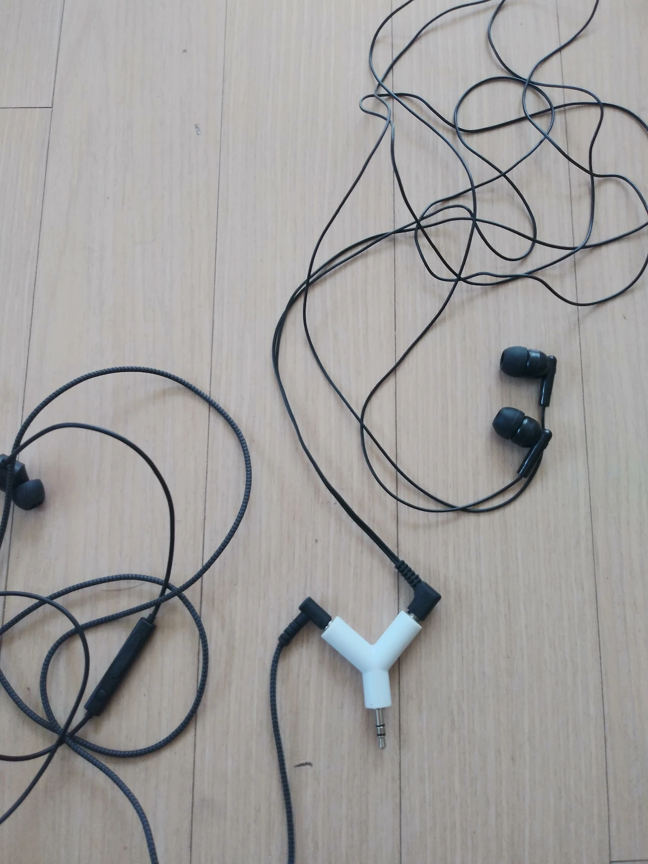 친구랑 이어폰을 나눠 끼고 같이 걸을라치면 아무래도 불편했다. 그때 신박한 물건을 알게 되어 냉큼 샀다. 어느 영화인가 드라마에 나와 눈여겨봐 둔 거였다. 각자의 이어폰을 한 폰에 끼워 같이 노래를 들으면서도 몸은 좀 더 편할 수 있는 연결잭이다. 물건을 사고 나서 써먹을 기회가 없었다. 그러다 이럭저럭 시간이 흐르고 무선 이어폰의 시대가 와 버렸다. 아~아쉬워라