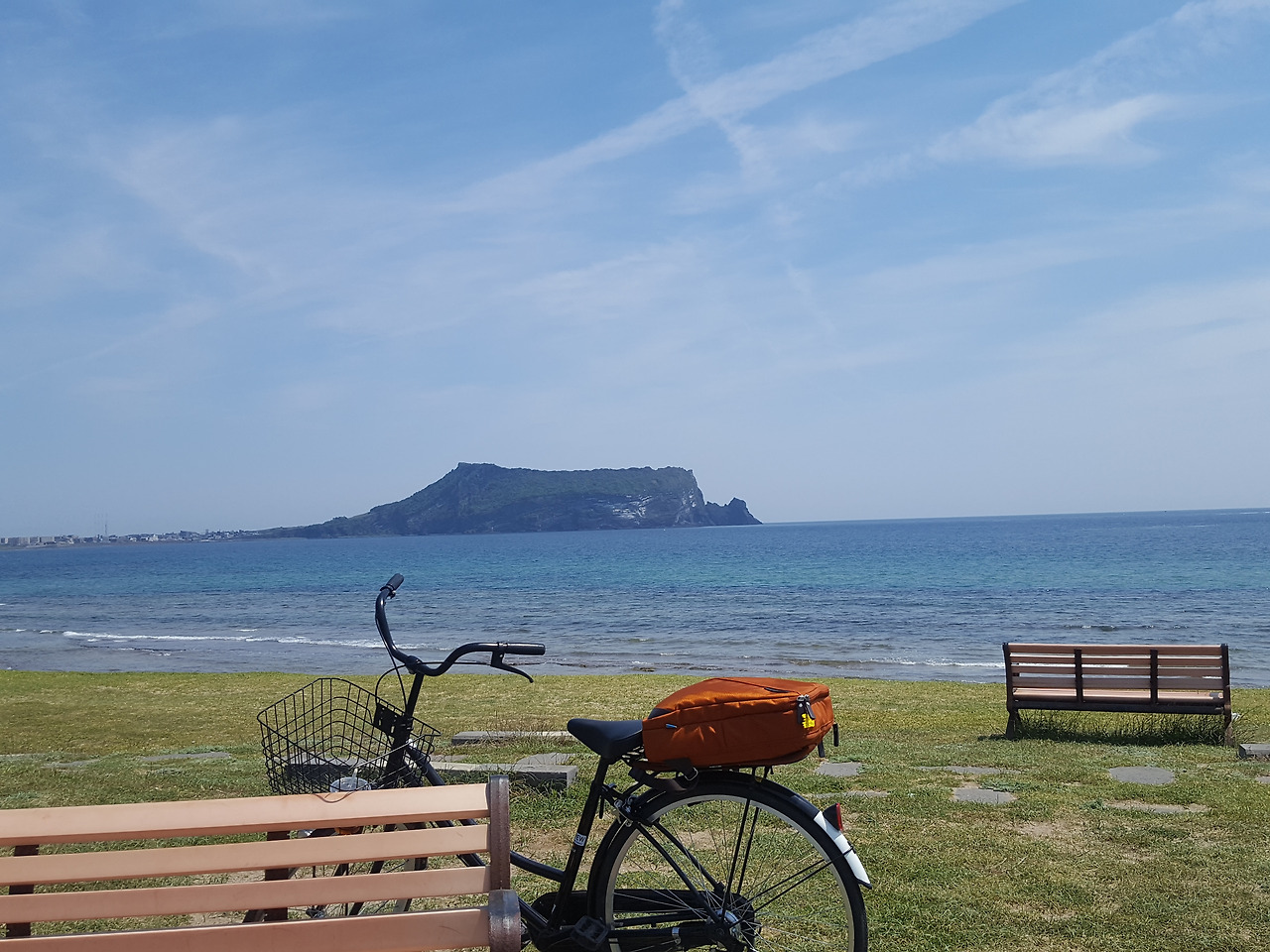 도렐 카페에서 콜드부르를 사서 자전거 빌려 타고 오늘의 본격 일정 시작~