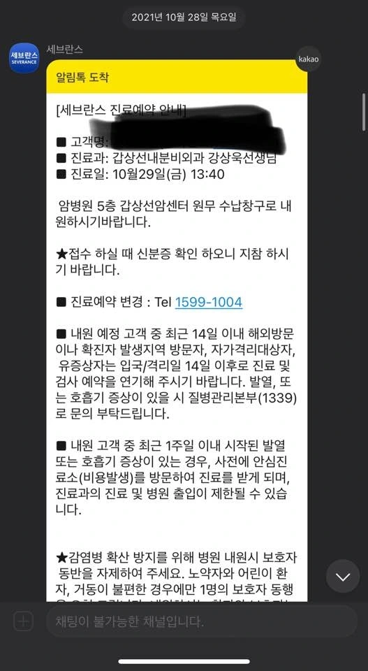 이상소견보다 더욱 충격적이었던 순간은 진료를 하게 된 상급병원의 이름을 보게 되었을때다.